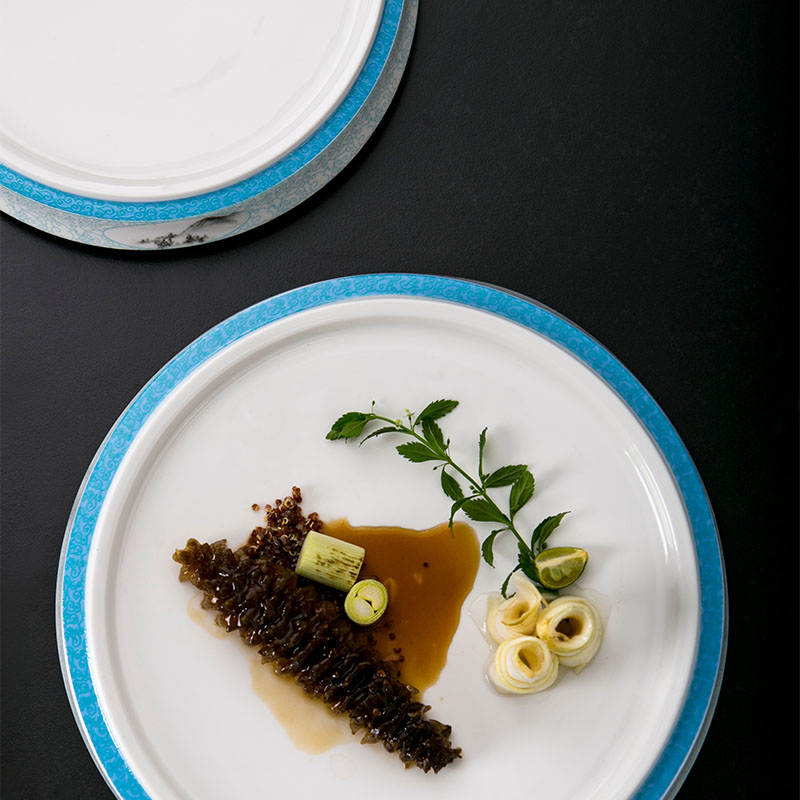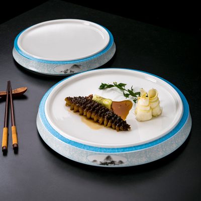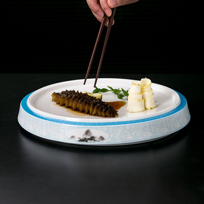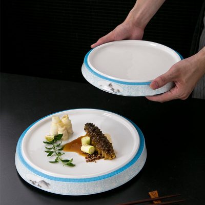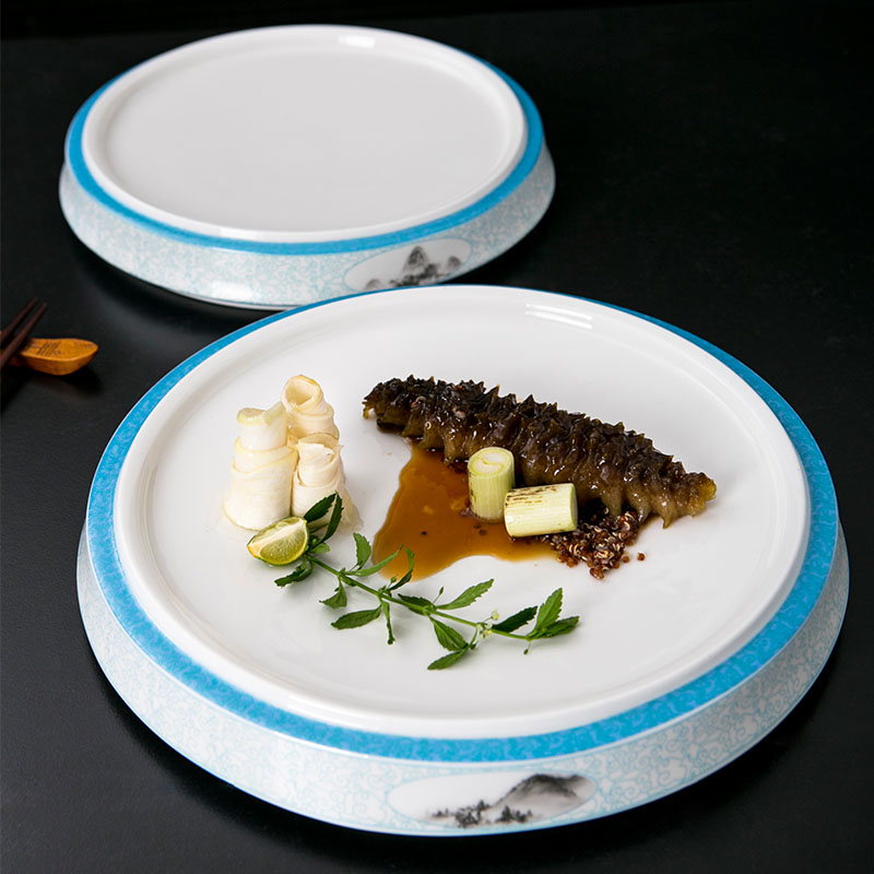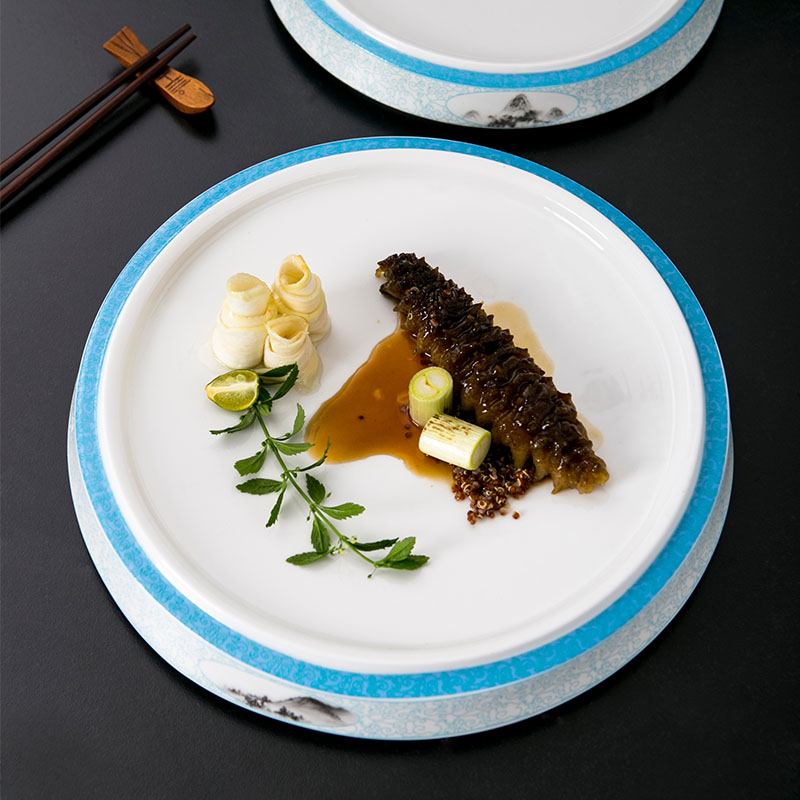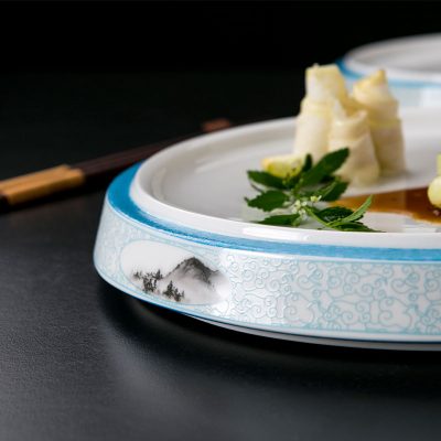 Đĩa gốm sứ họa tiết sông núi mát mẻ, hài hòa, hàng cao cấp Trung Quốc.