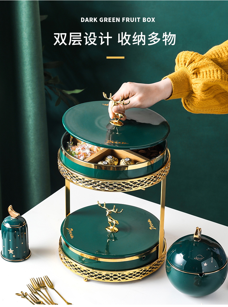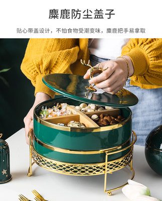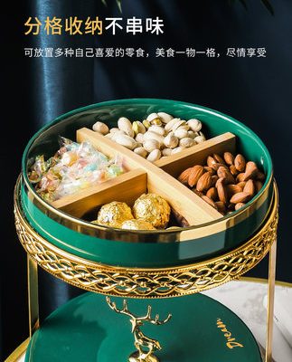 Đĩa trái cây phòng khách nhà sáng tạo ánh sáng hiện đại sang trọng Đĩa trái cây sấy khô bàn cà phê trang trí đồ trang trí hộp kẹo có ngăn và nắp.