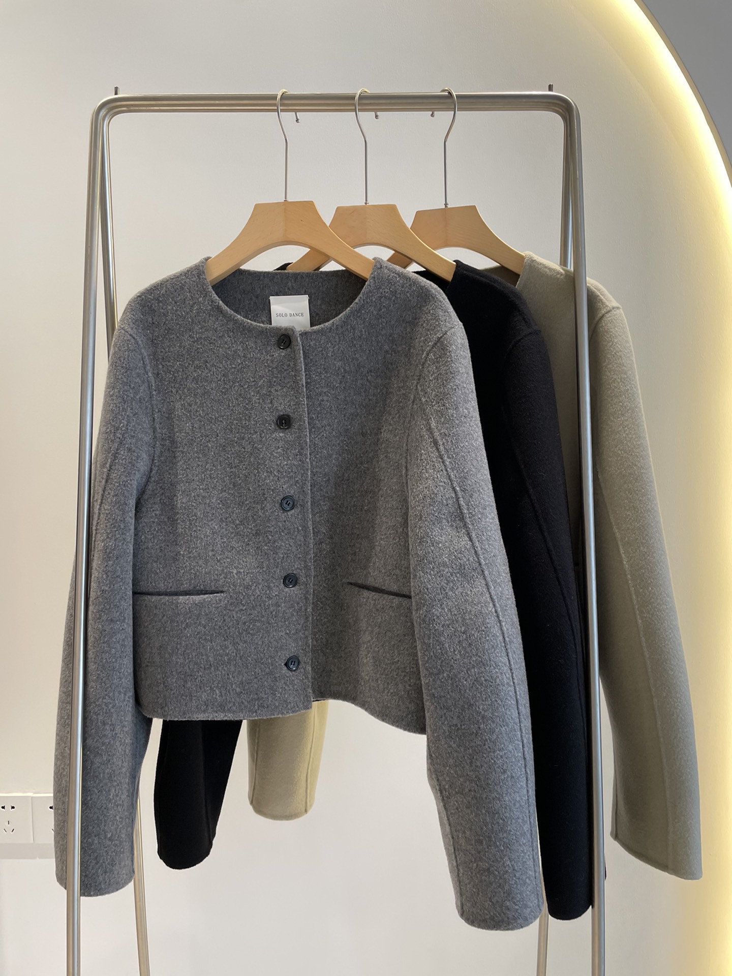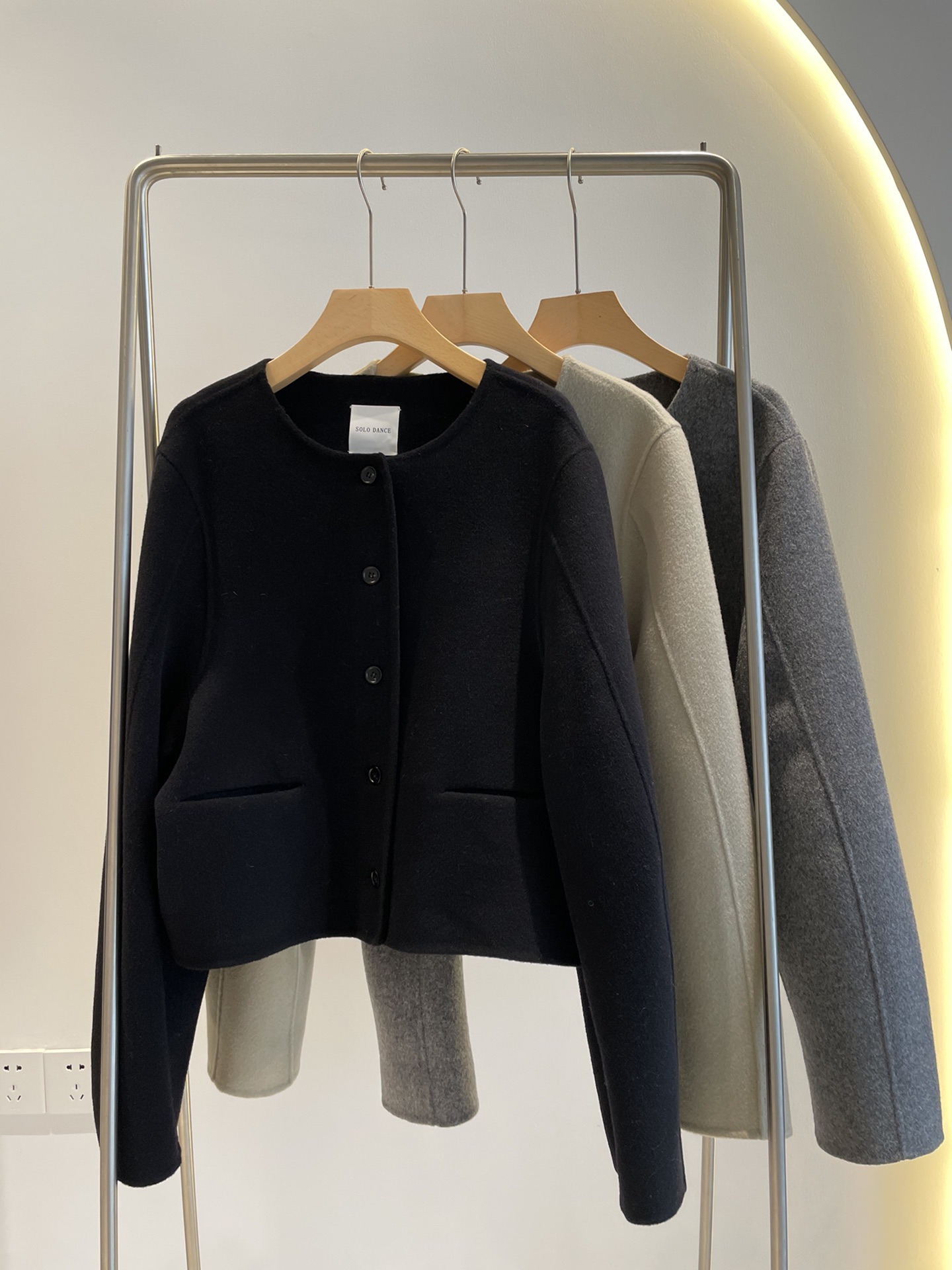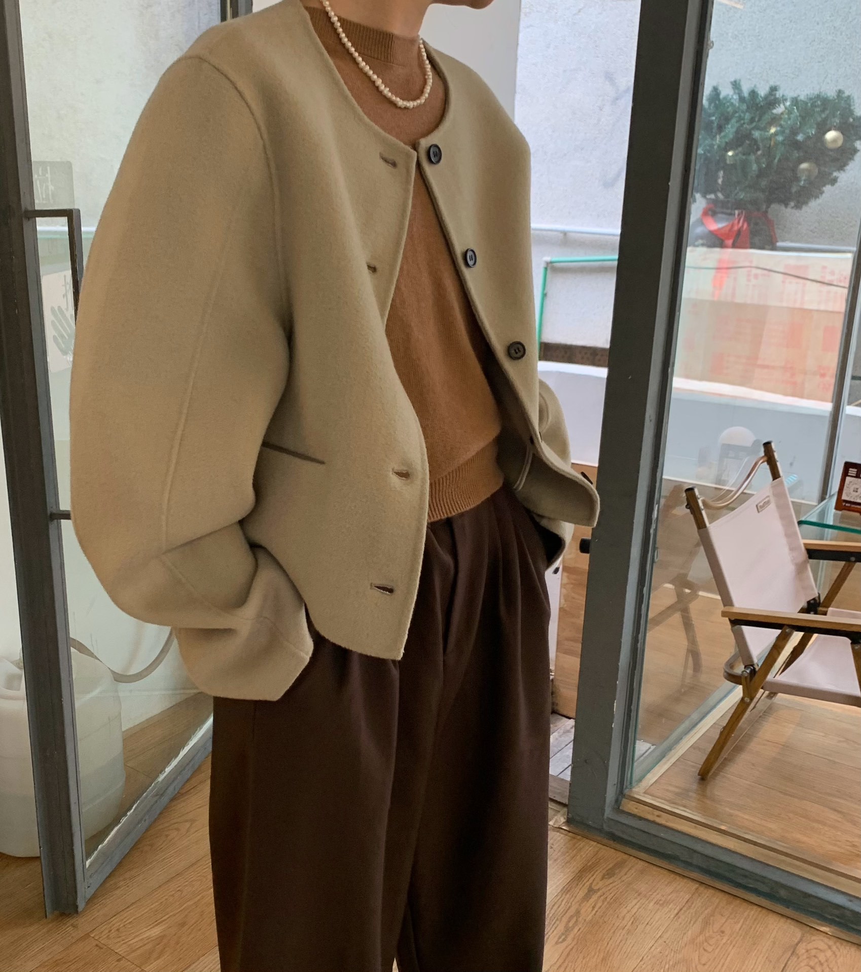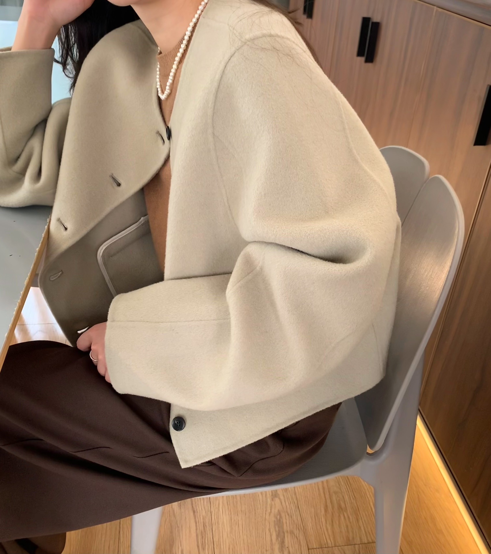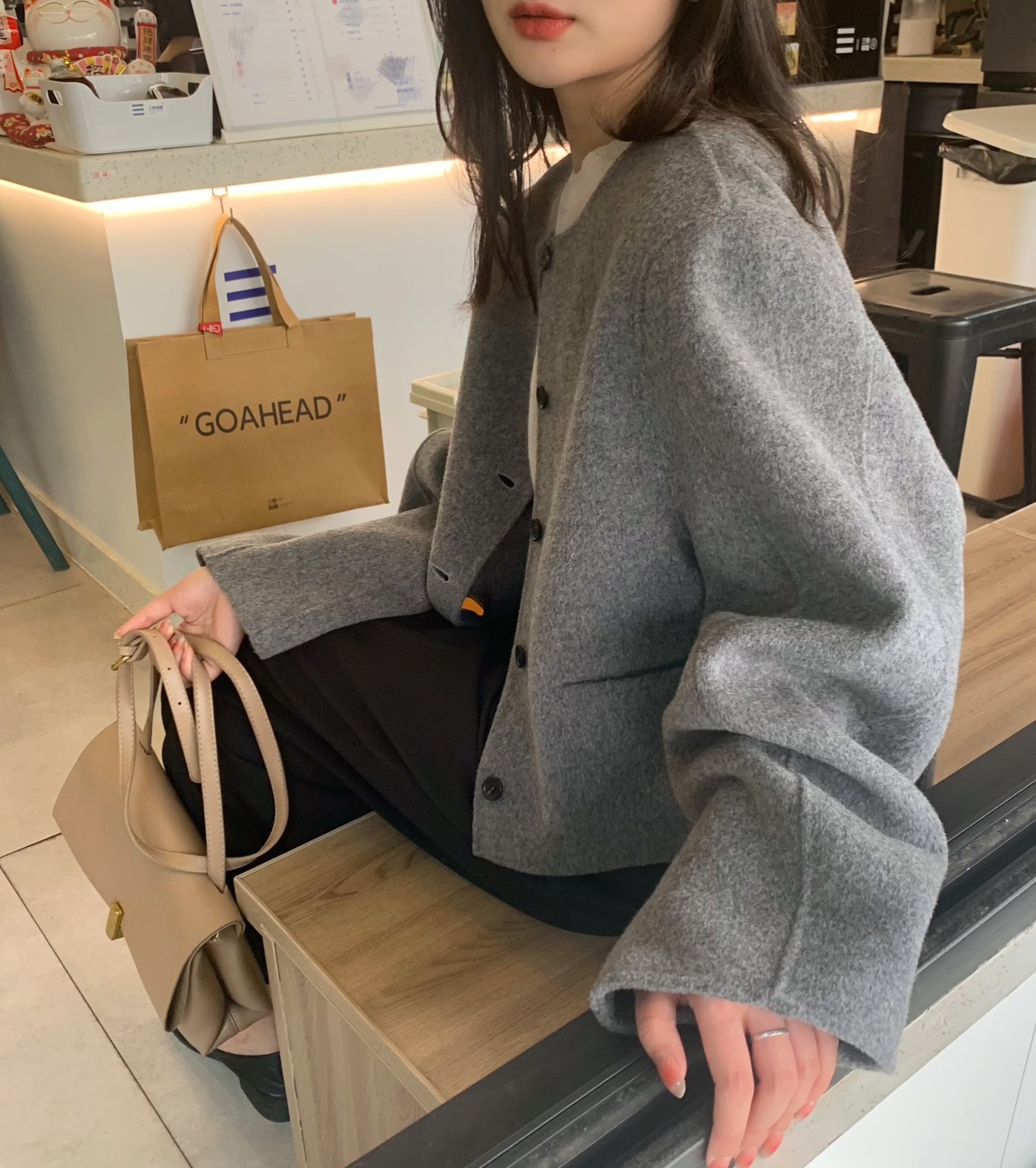 Điểm Hàn Quốc Dongdaemun 2023 đầu mùa thu mới không cổ túi nhỏ ngắn 2 mặt áo khoác len áo khoác nữ