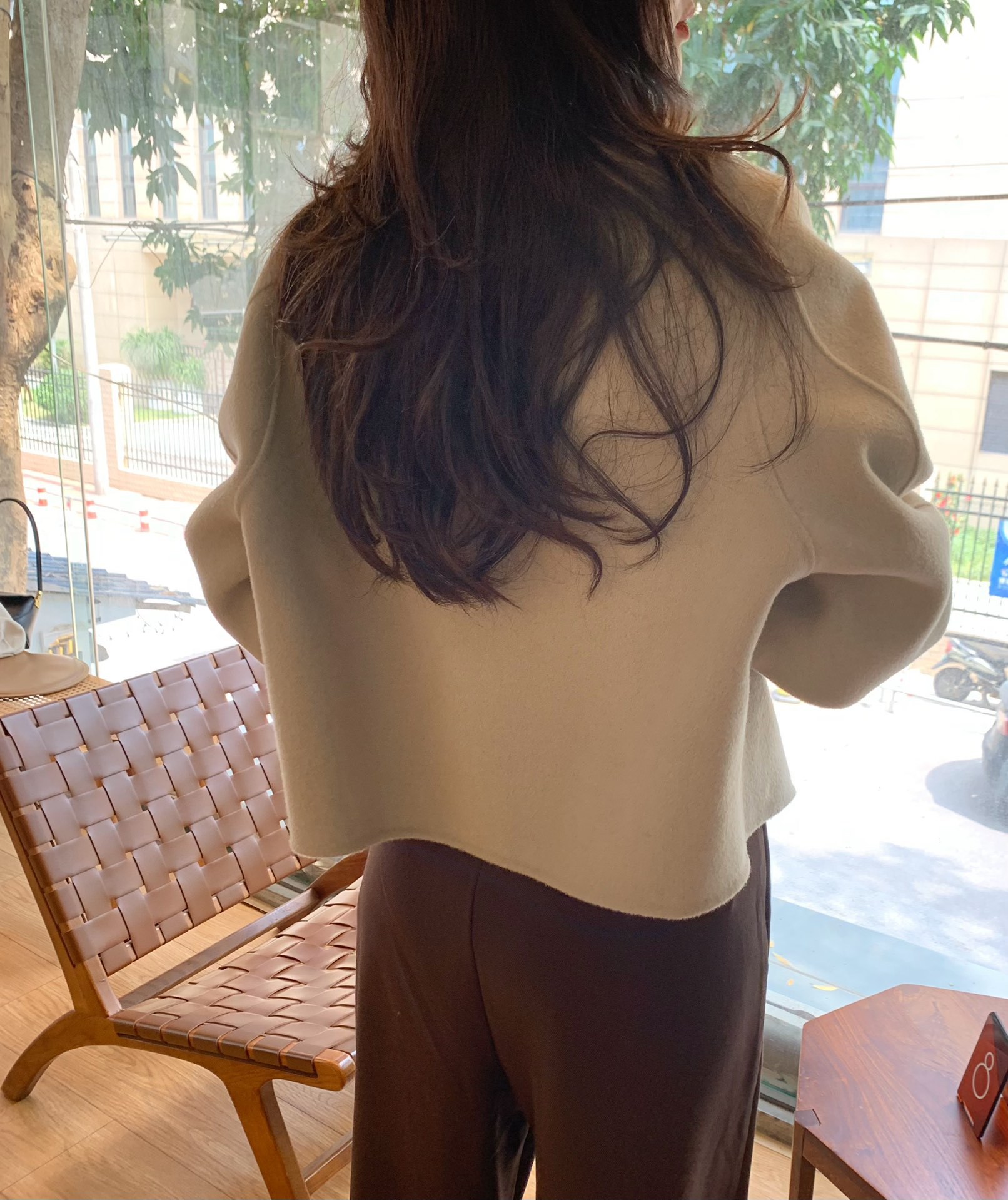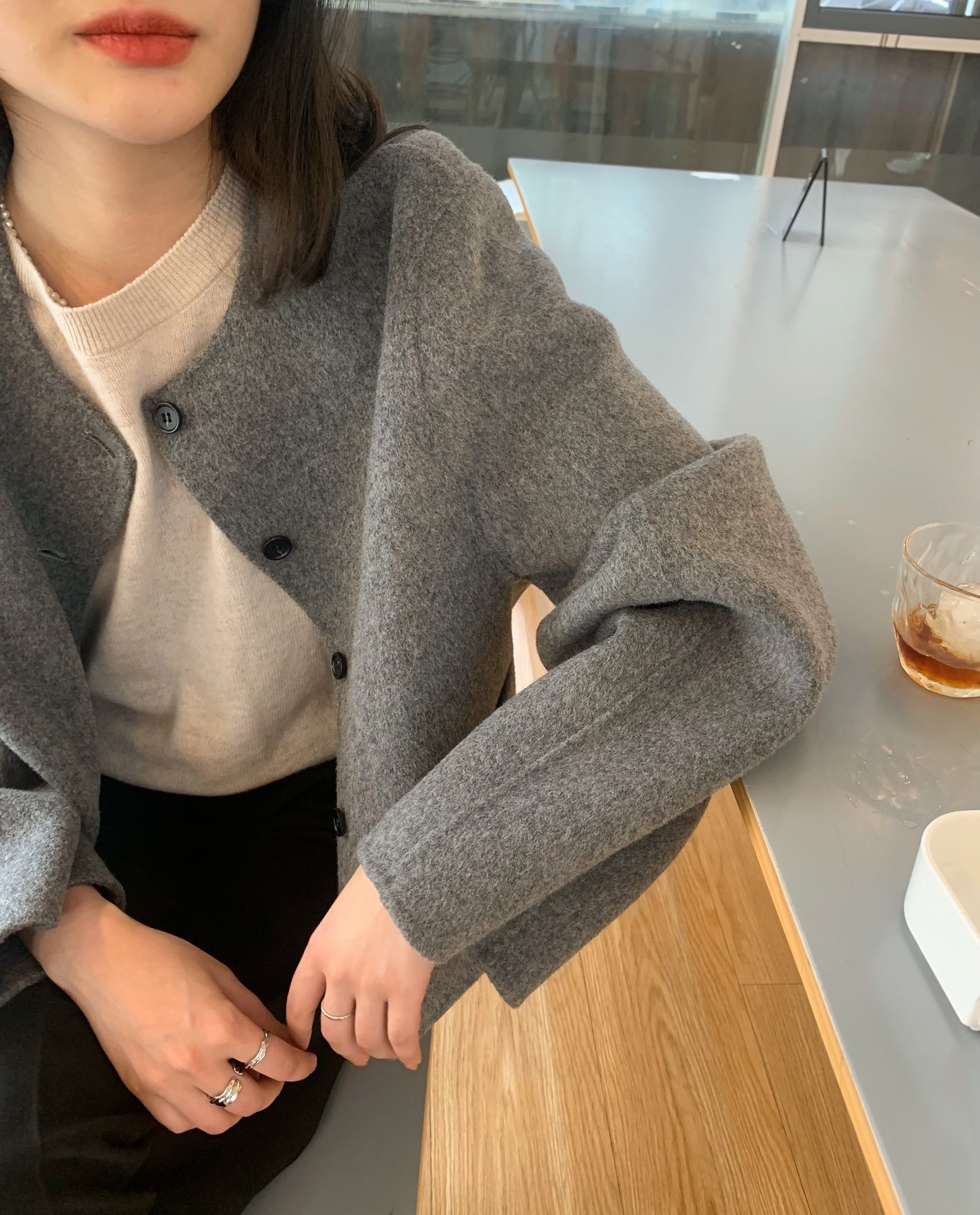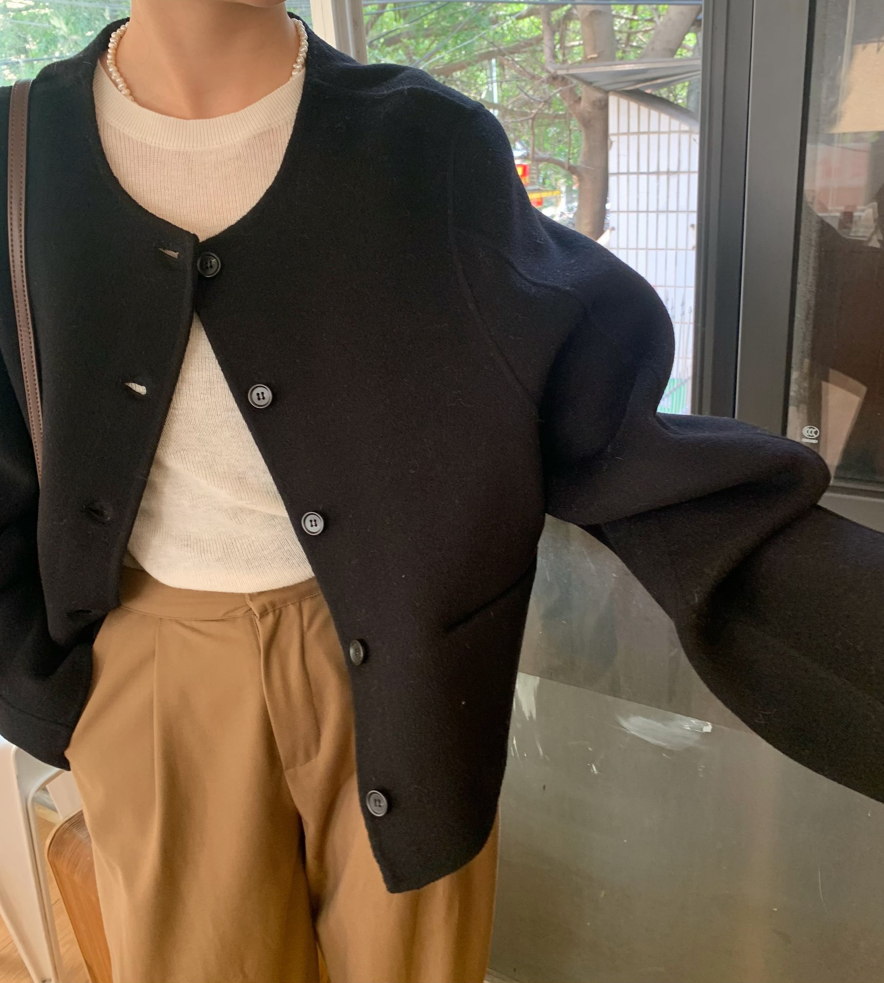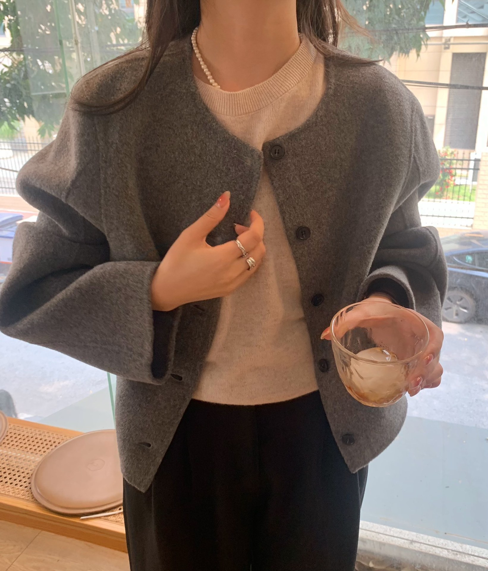 Điểm Hàn Quốc Dongdaemun 2023 đầu mùa thu mới không cổ túi nhỏ ngắn 2 mặt áo khoác len áo khoác nữ