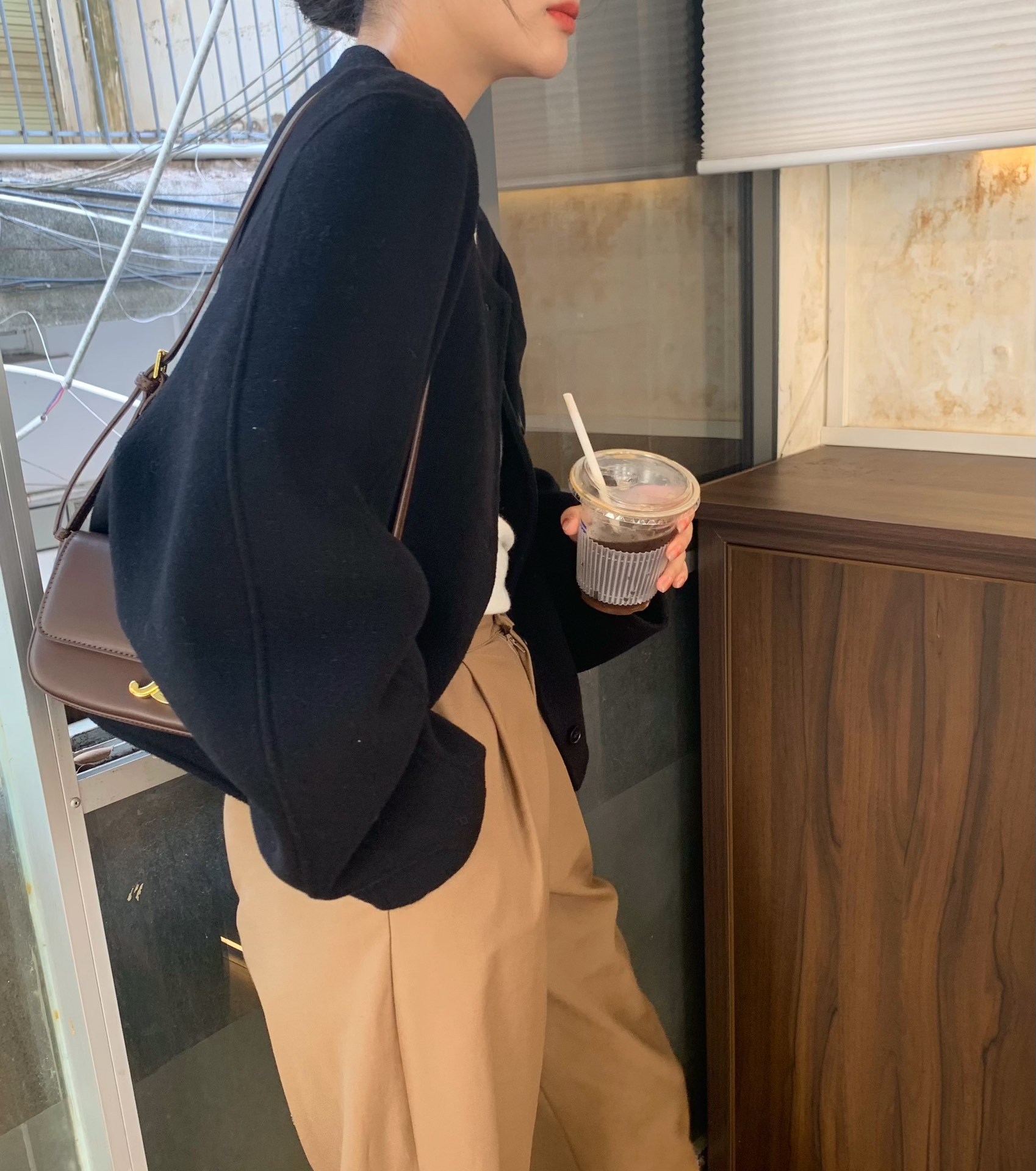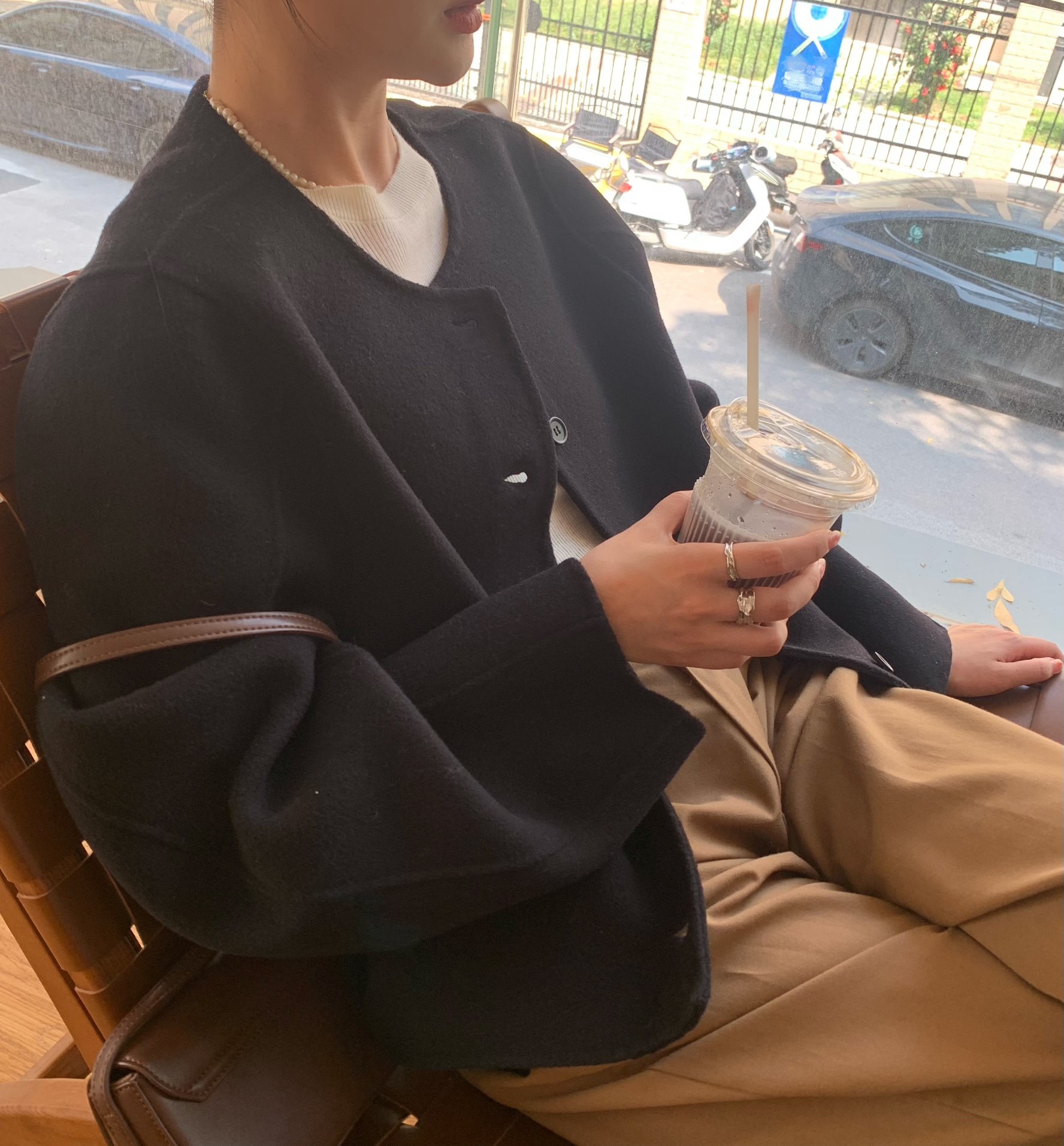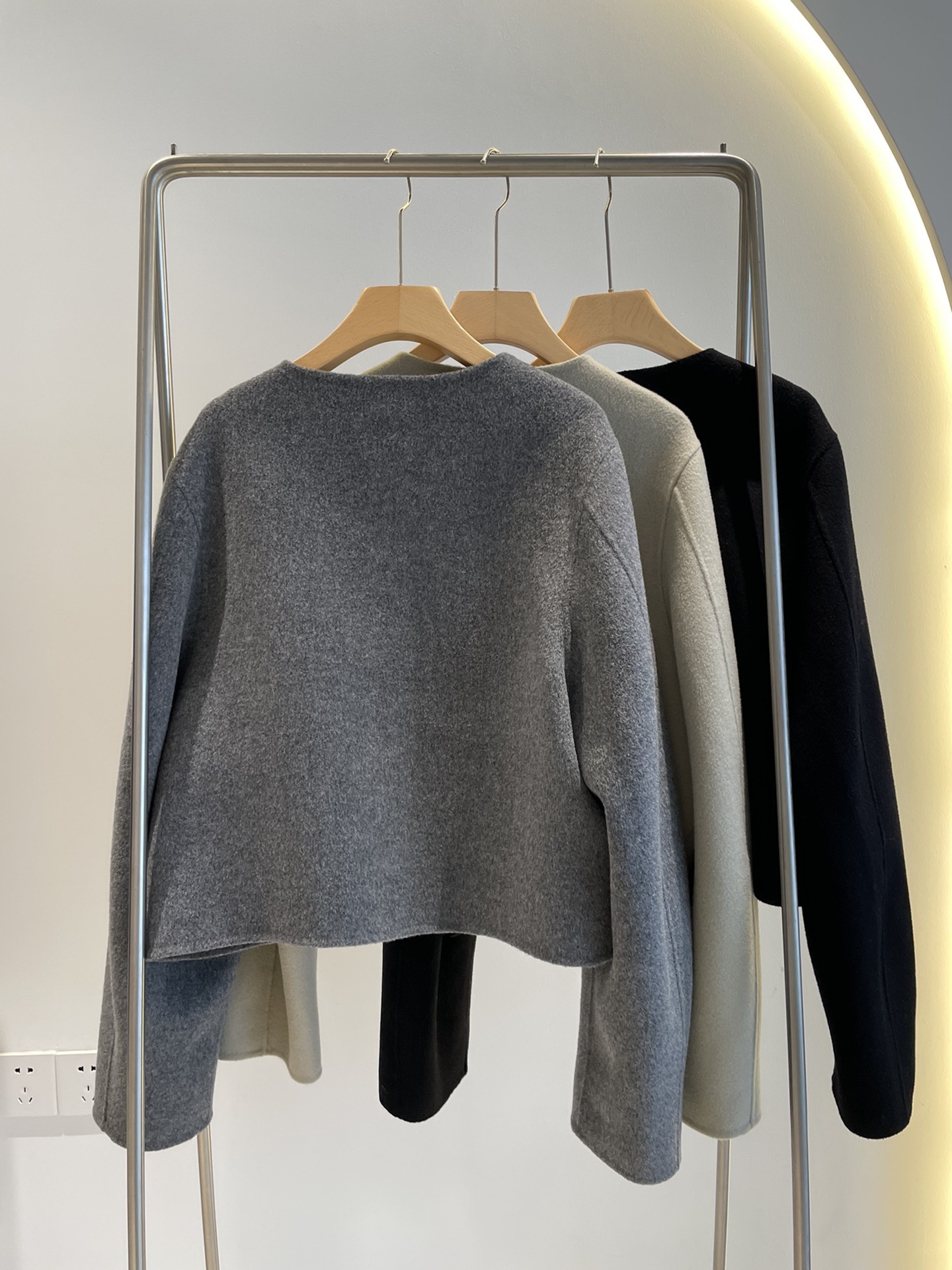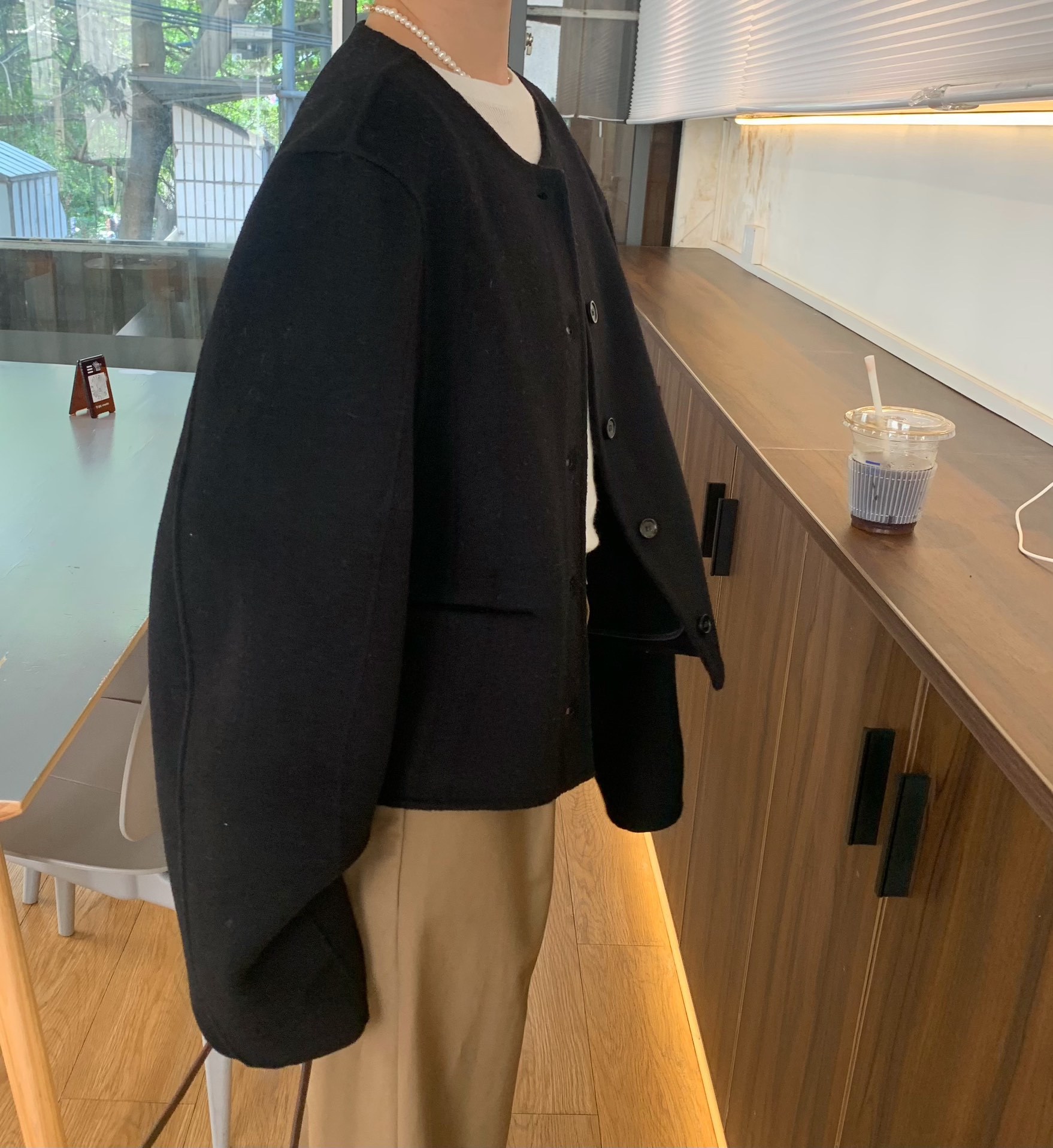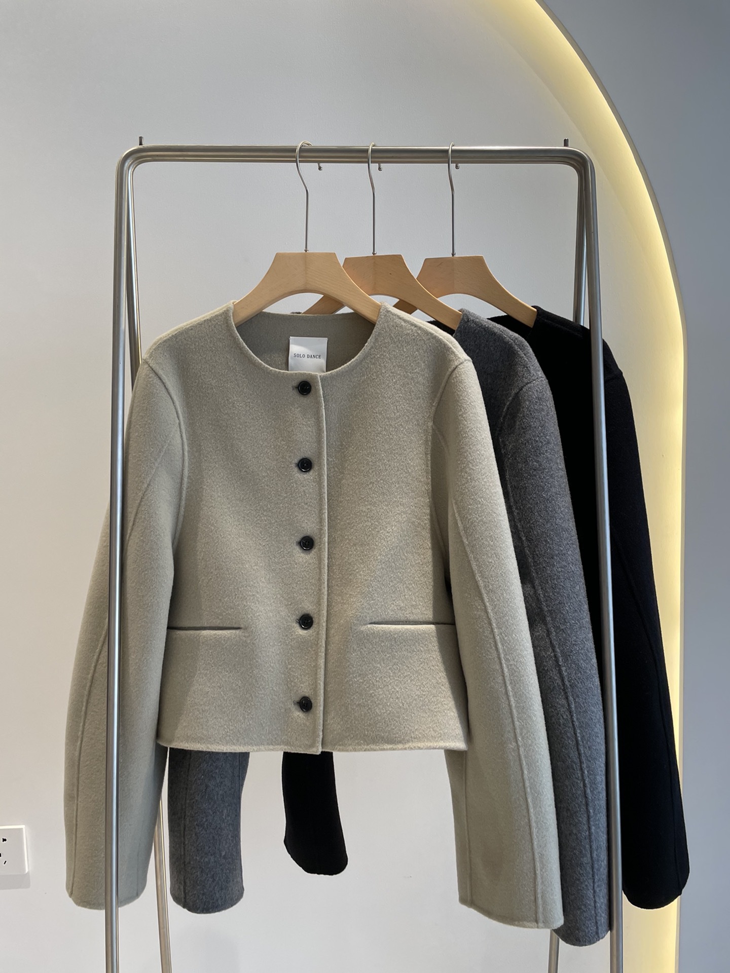Điểm Hàn Quốc Dongdaemun 2023 đầu mùa thu mới không cổ túi nhỏ ngắn 2 mặt áo khoác len áo khoác nữ