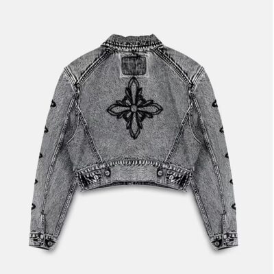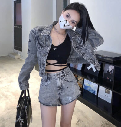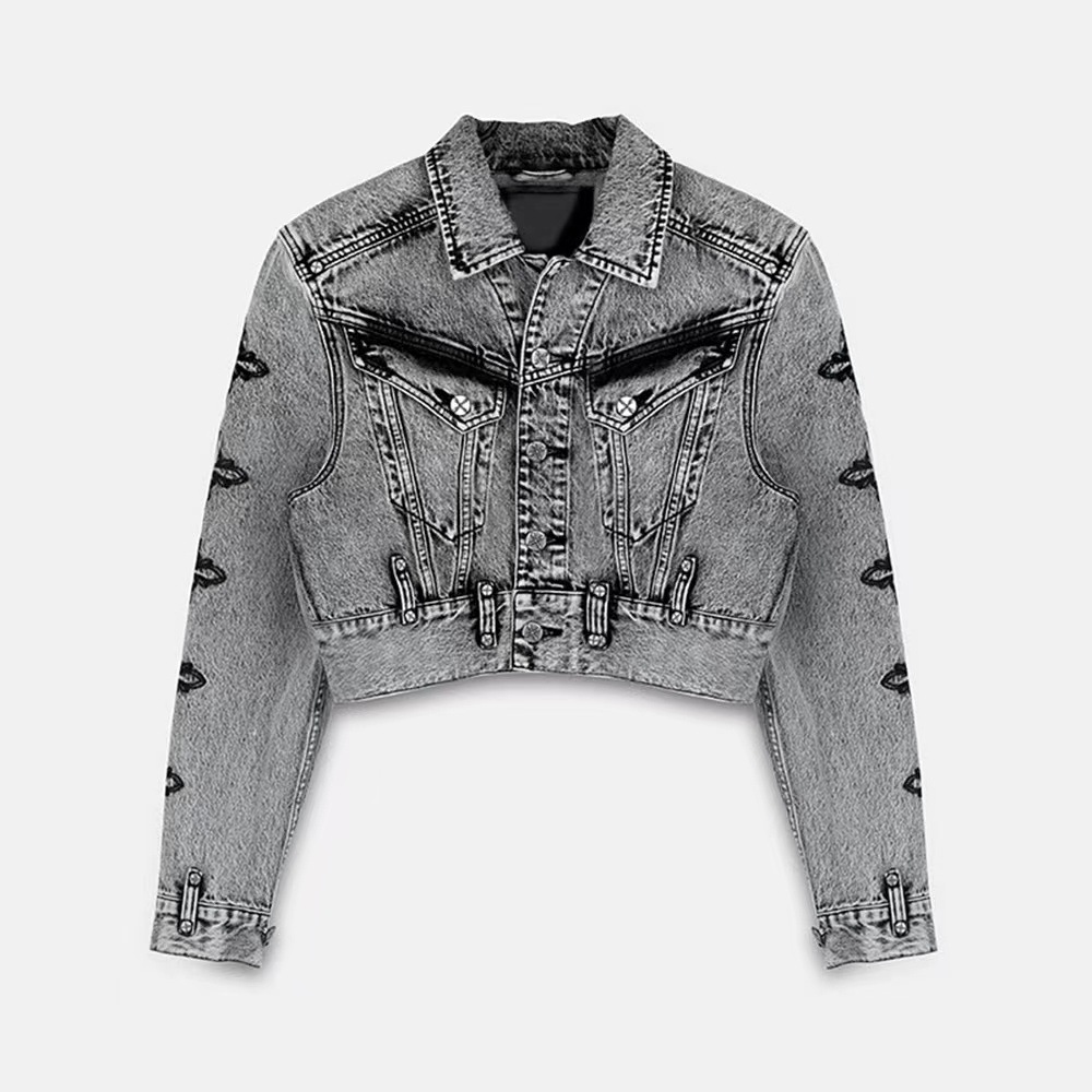 Điểm M SMFK chéo xe máy áo khoác denim Ju Jingyi cùng phong cách giặt thêu cũ áo khoác ngắn nữ mới