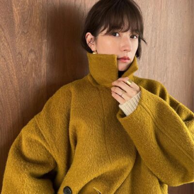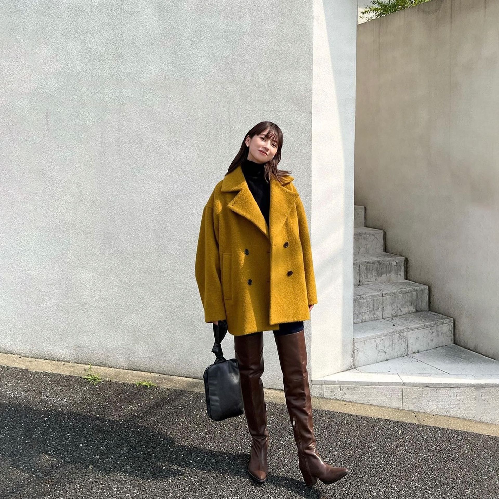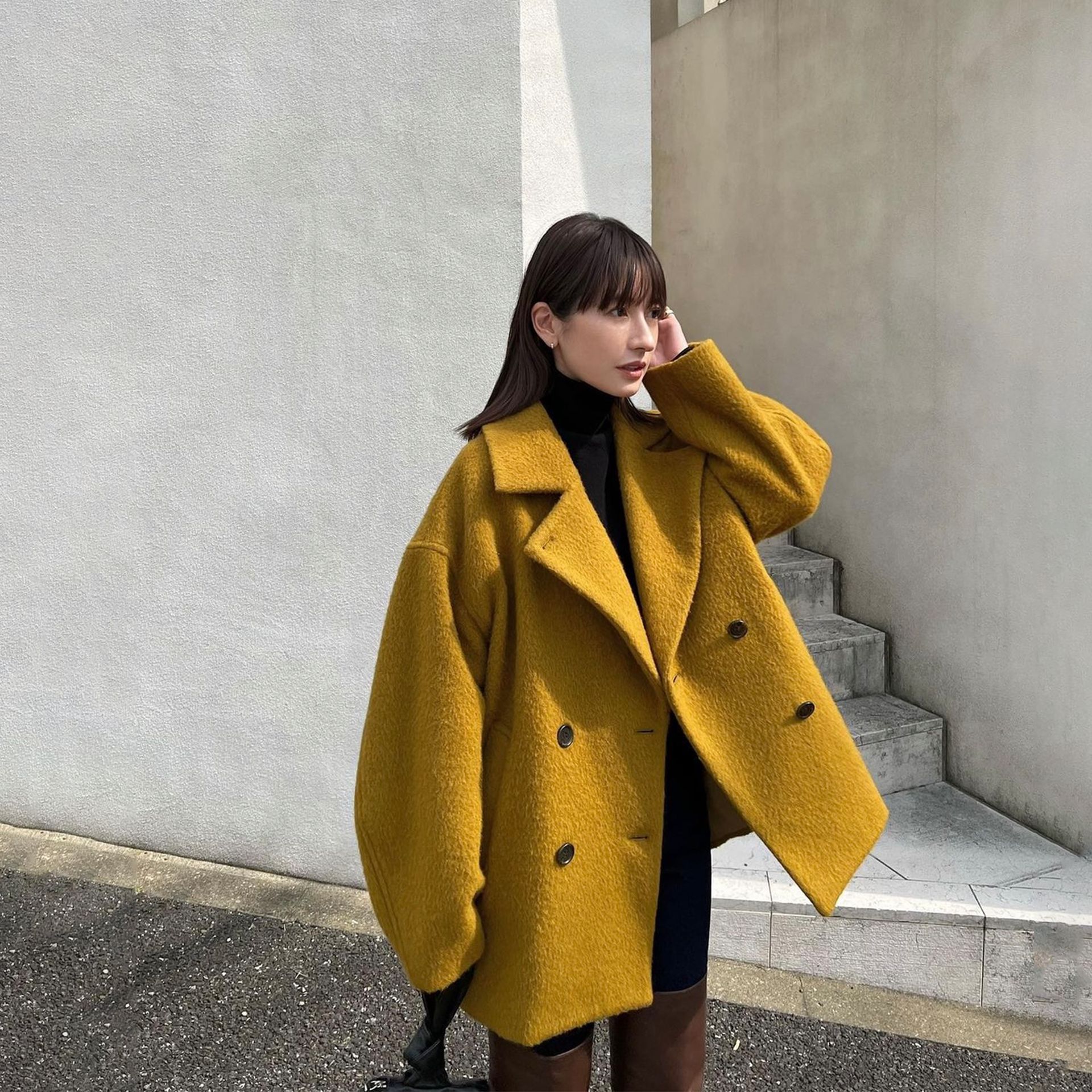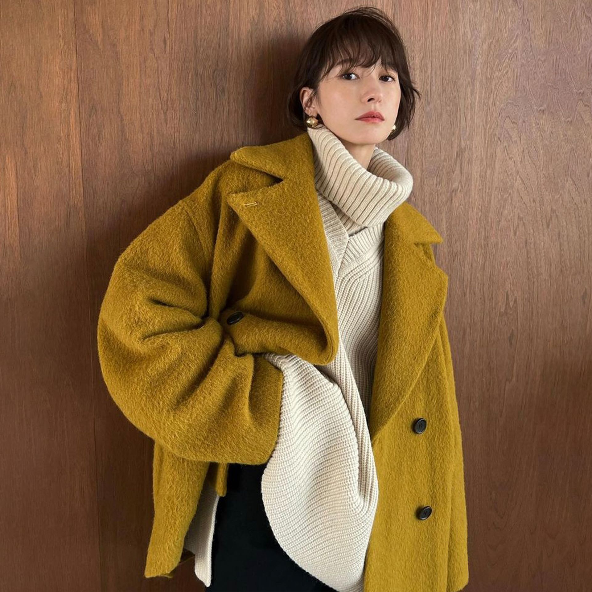 Điểm Matsumoto Huina áo khoác len giữa chiều dài phù hợp với cổ áo người đàn ông nhỏ mùa thu và mùa đông ấm len áo khoác ngắn