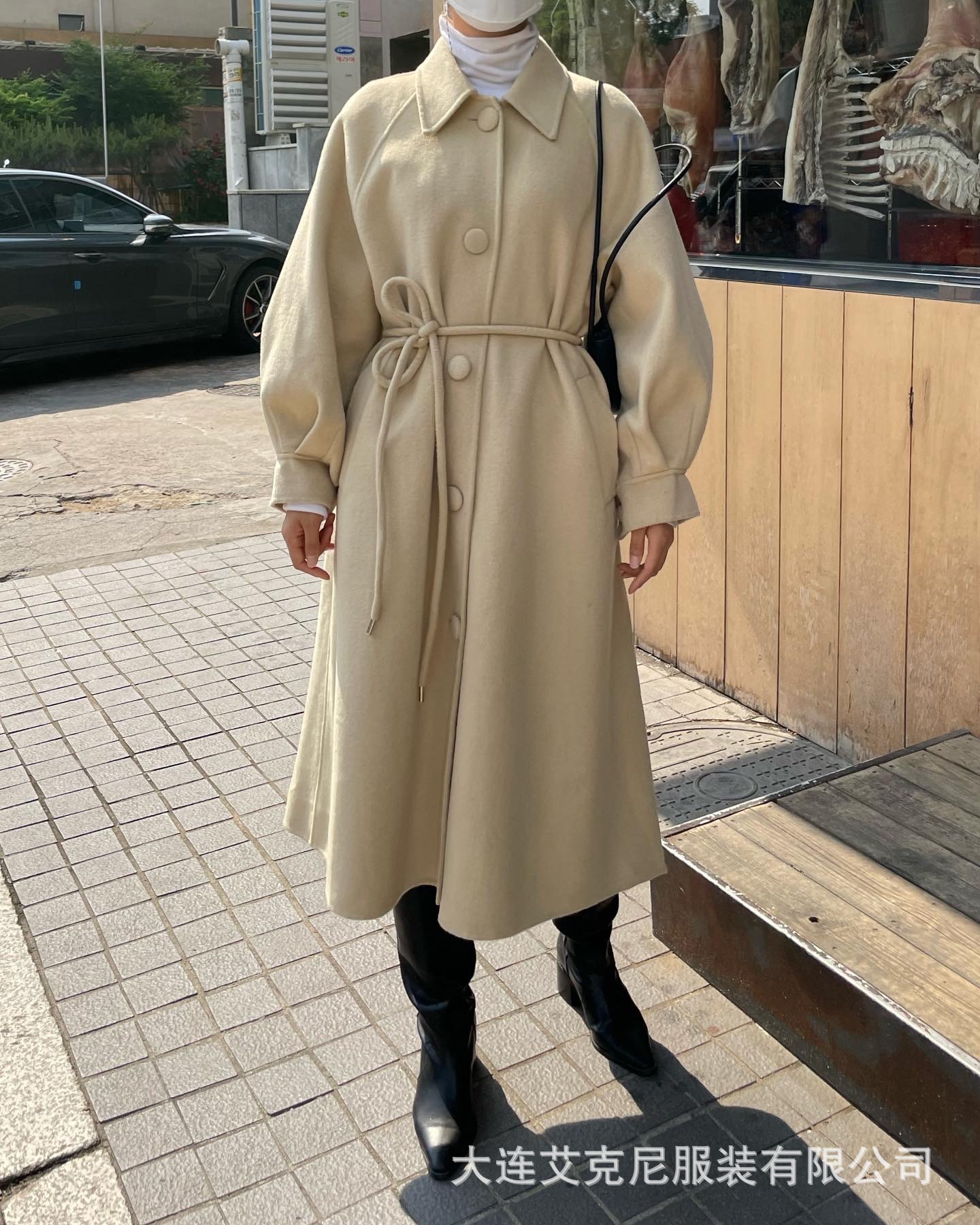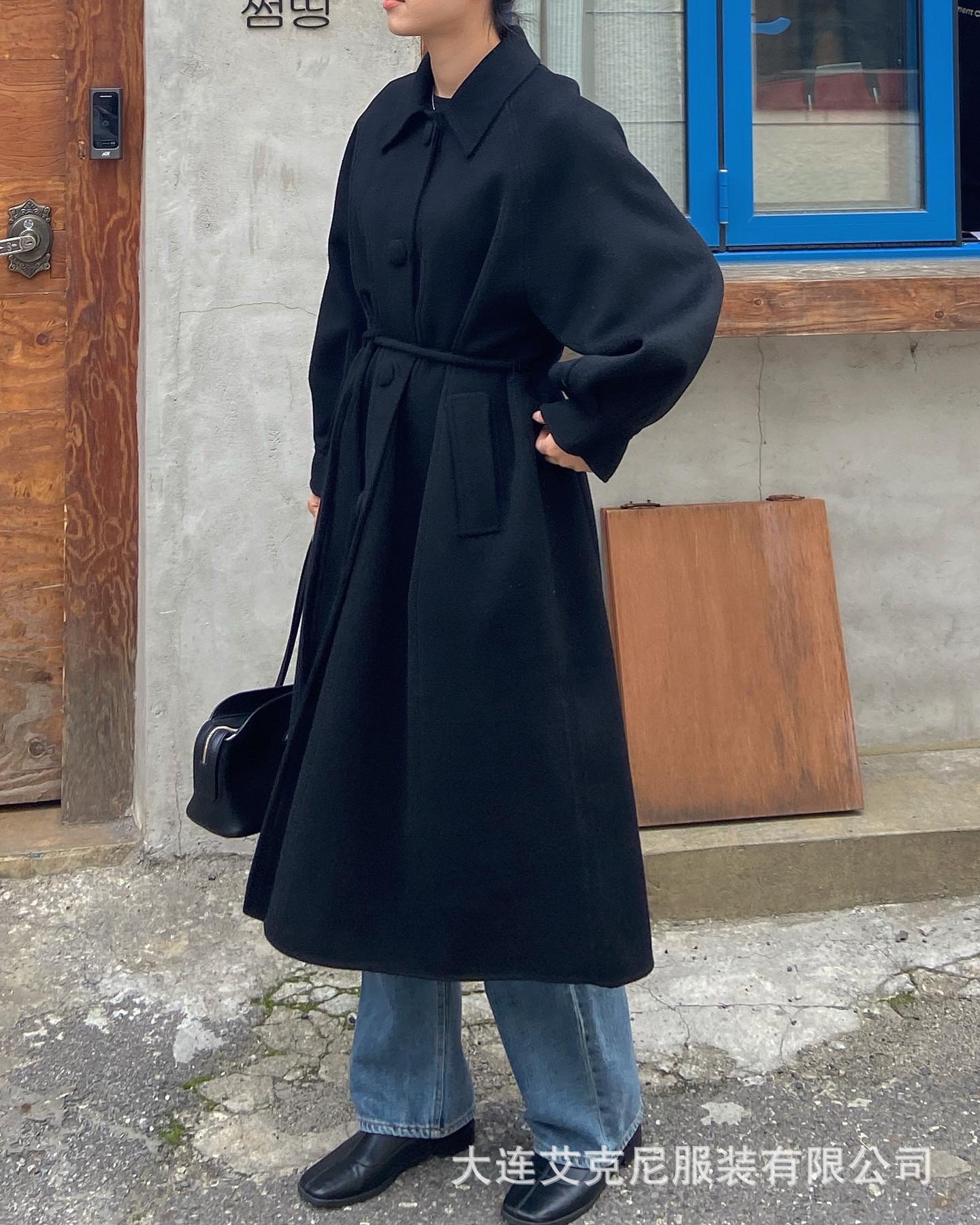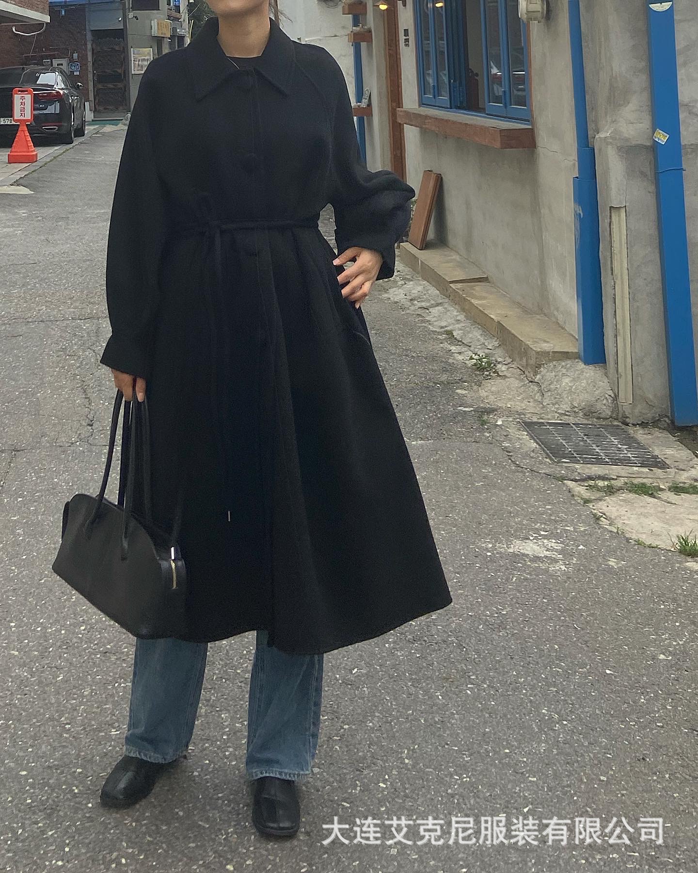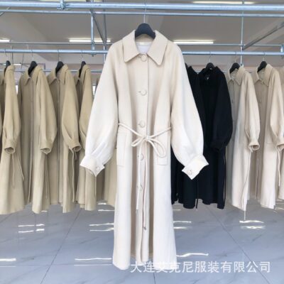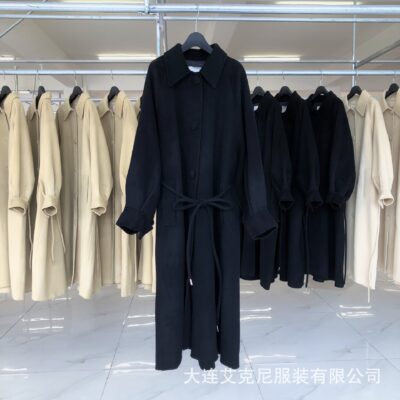 Điểm Mùa Đông Hàn Quốc TA Mới May Thủ Công 2 Mặt Áo Khoác Cashmere Kéo Dài Điện Đơn Eo Mỏng Dây Áo Khoác len Nữ