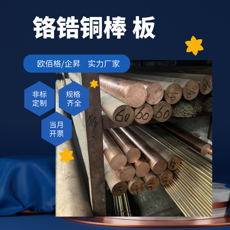 铬锆铜是一种耐磨铜,硬度特佳,具有优良的导电性及良好的抗回火能力,直立性好,薄片不易弯曲,是一种很好的航空材料加工电极。硬度》75(布氏) 密度8.95g/cm3 电导率》43MS/m 软化温度》550℃, 一般用于制作工作温度350℃以下的电焊机电极.电机整流子片以及其他各种在高温下工作的要求有高的强 度.硬度.导电性和导性的零件,还可以双金属的形式用于刹车盘和圆盘。