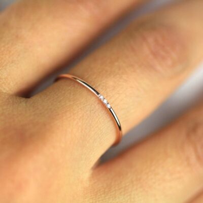 Điều ước mới Thương mại điện tử xuyên biên giới Nhẫn kim cương mỏng tối giản Nhẫn kim cương vàng nguyên chất 14k 1mm tròn mỏng