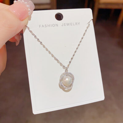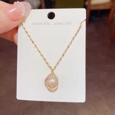 Đính đá zircon cao cấp bao quanh vòng cổ ngọc trai nước ngọt thời trang thích hợp cho nữ dây chuyền xương đòn khí chất đơn giản và linh hoạt