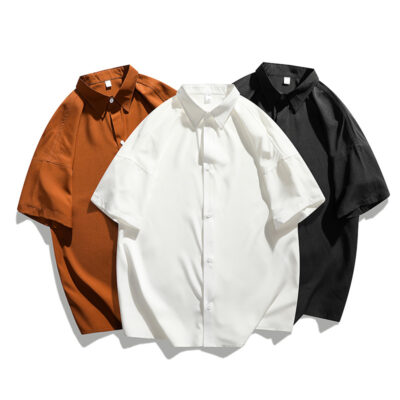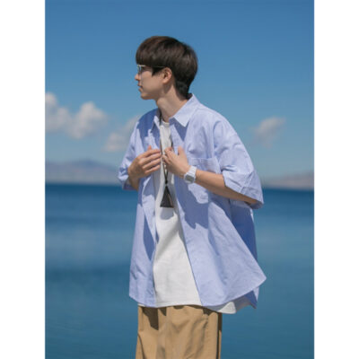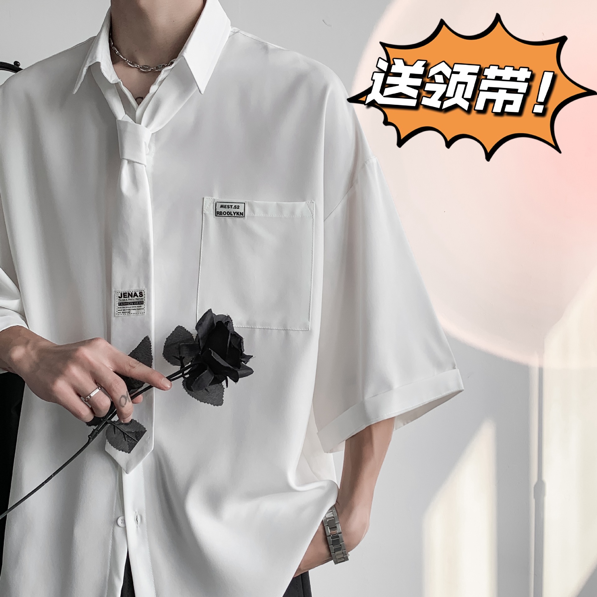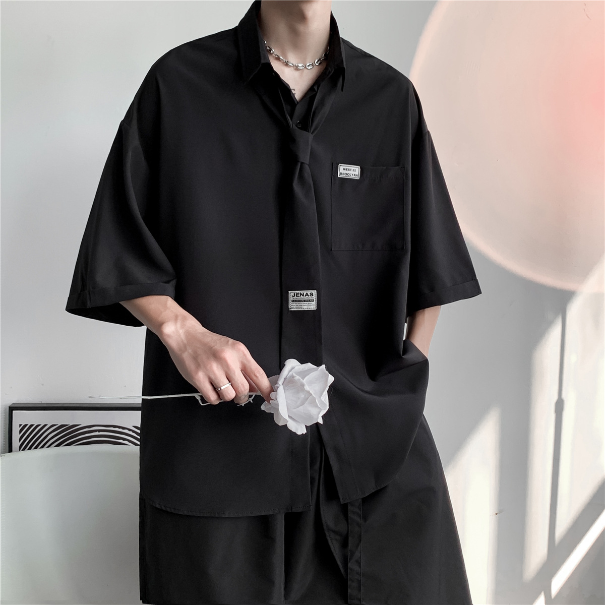 DK áo sơ mi ngắn tay nam hệ thống tiết chế áo rời phong cách Hồng Kông phong cách Hàn Quốc hợp thời trang áo sơ mi tay năm điểm côn đồ đồng phục học sinh đẹp trai