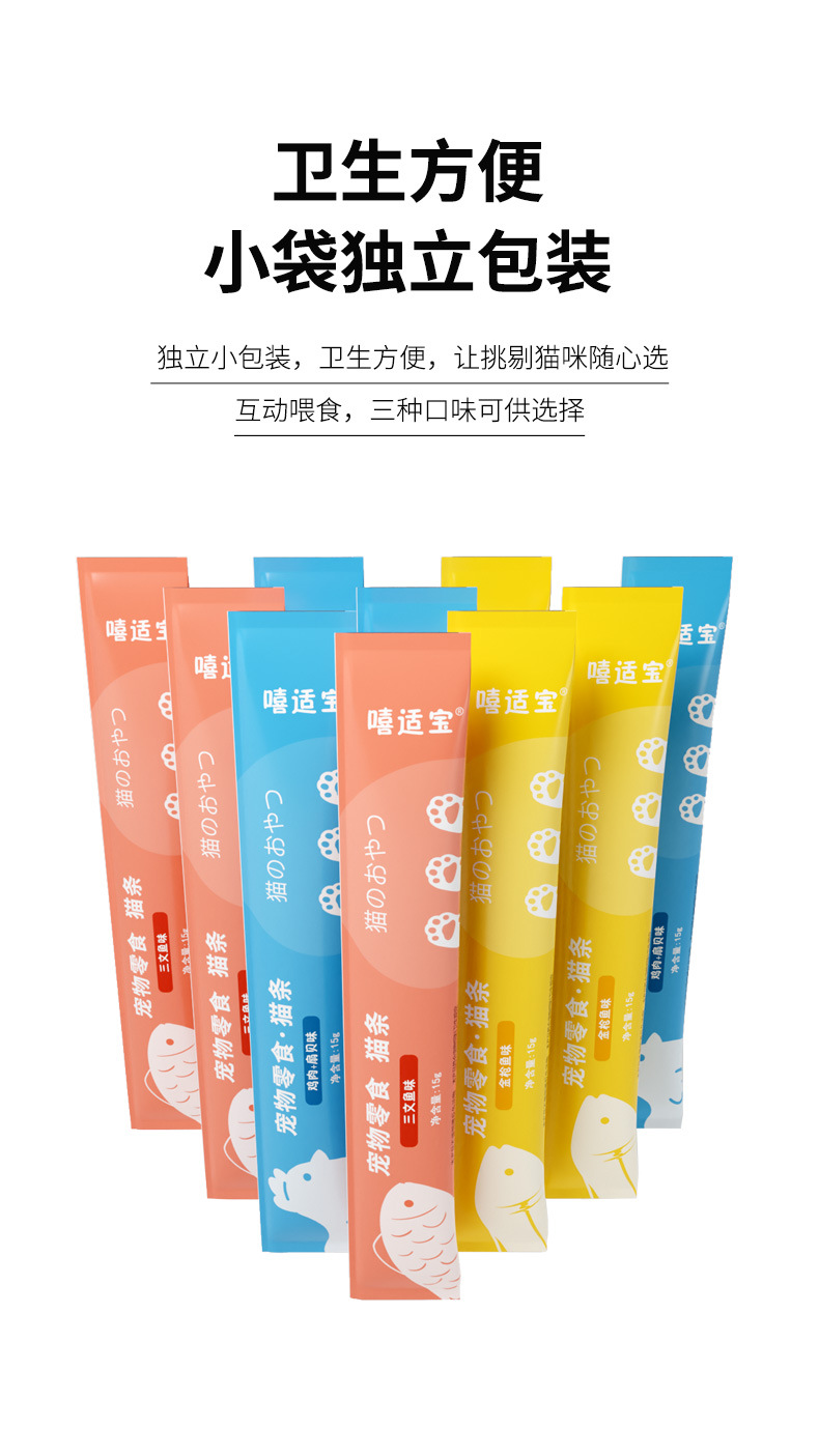 Đồ ăn nhẹ cho thú cưng mèo dải thức ăn ướt mèo con kem dinh dưỡng đóng hộp thức ăn cho mèo vỗ béo tóc mang mèo dải 15g * 10 gậy bán buôn