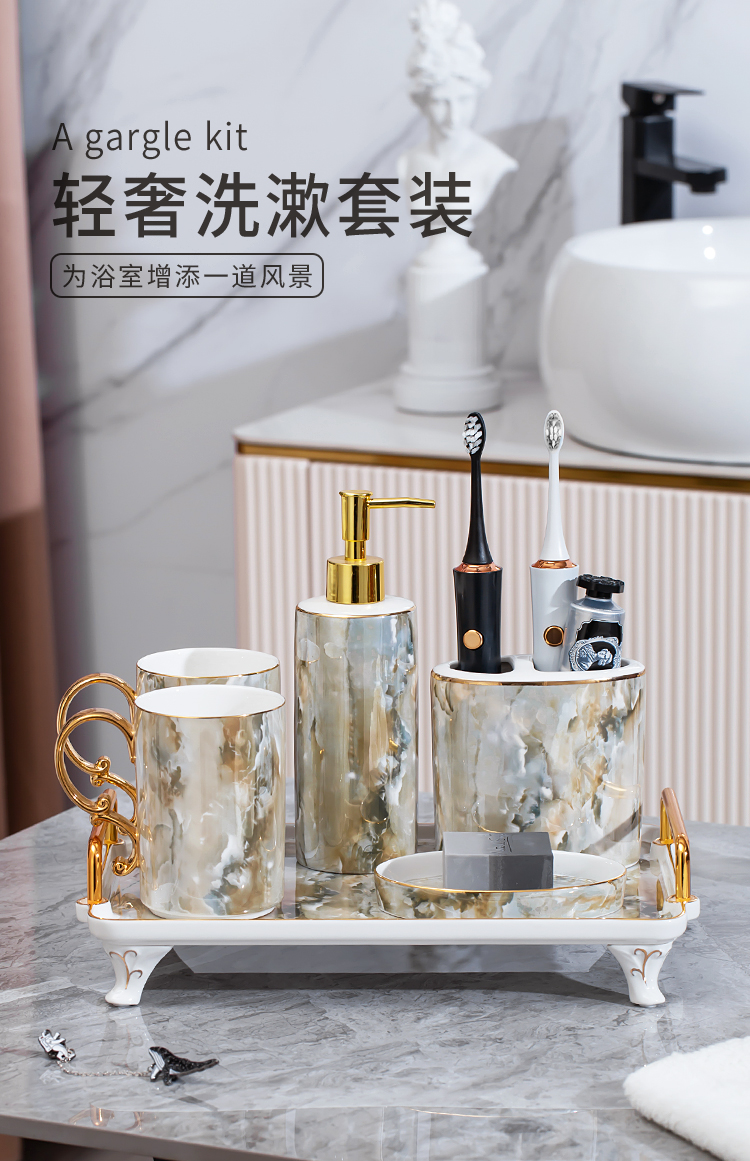 Đồ dùng phòng tắm trong phòng tắm Bộ cốc rửa năm mảnh nhẹ sang trọng hiện đại Bộ cốc nước súc miệng bằng gốm sứ Châu Âu