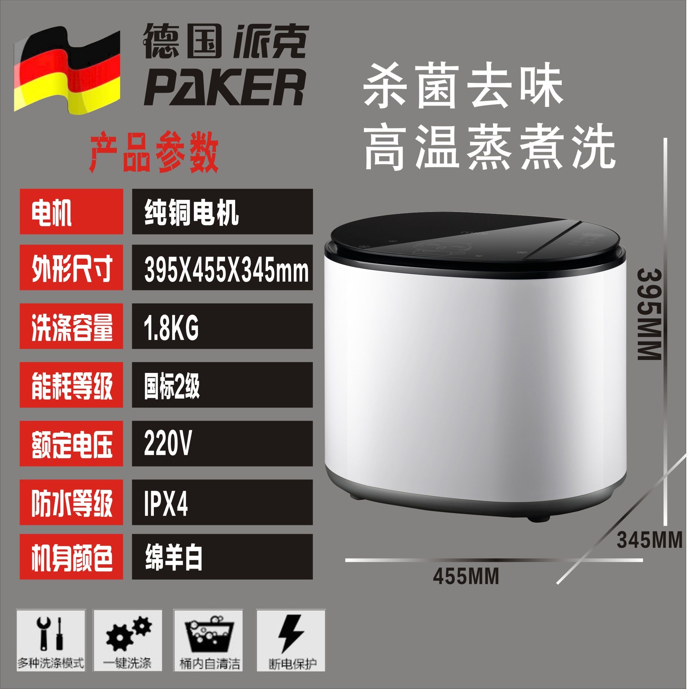 Đồ lót phụ nữ cho mẹ và bé Parker của Đức máy giặt mini tự động nấu, giặt và khử trùng ở nhiệt độ cao thông minh