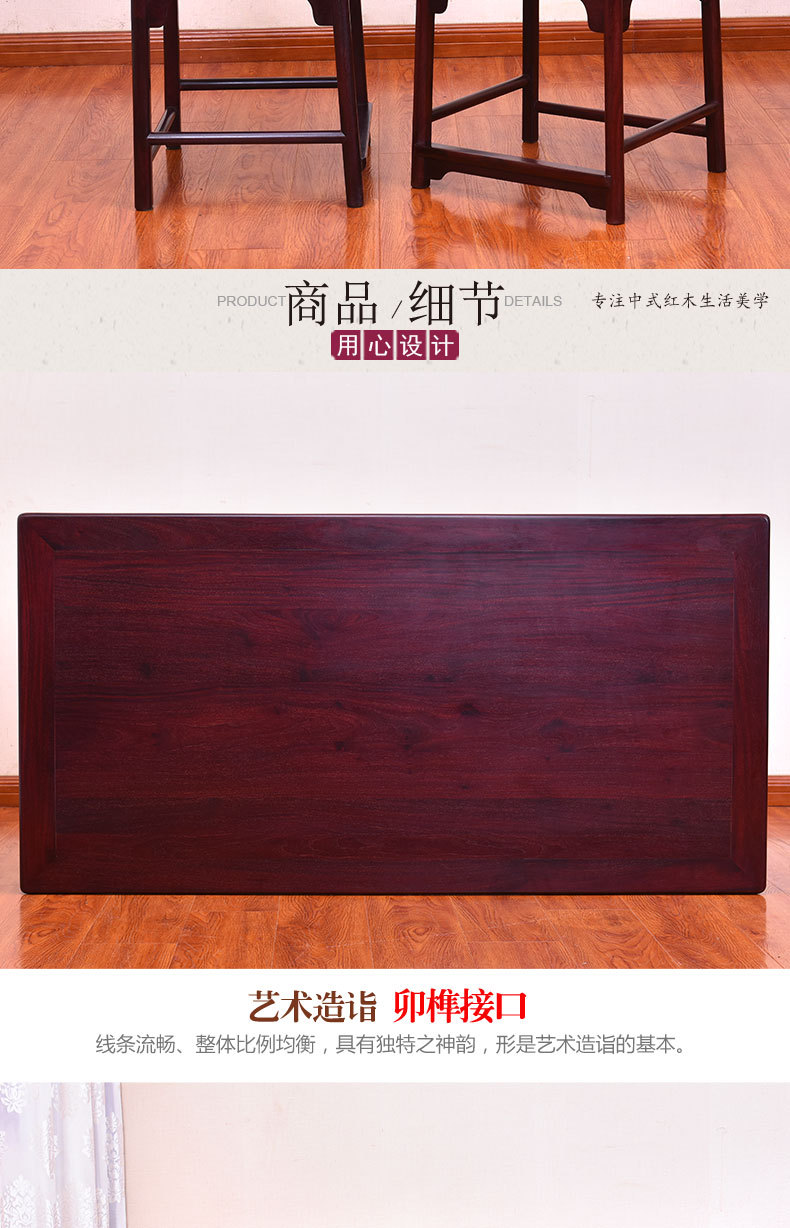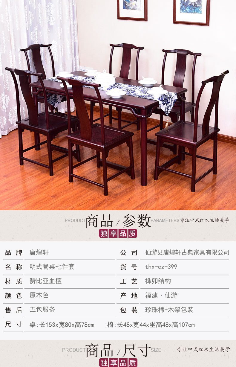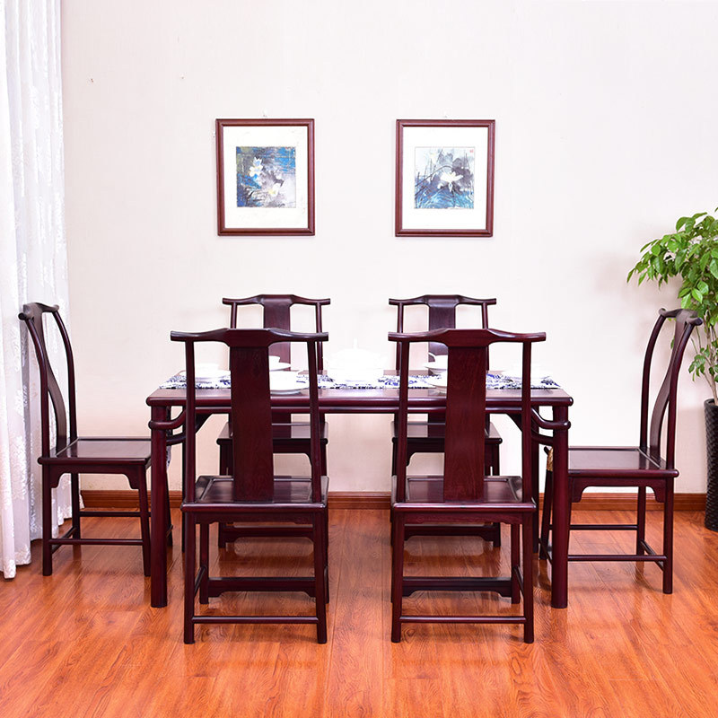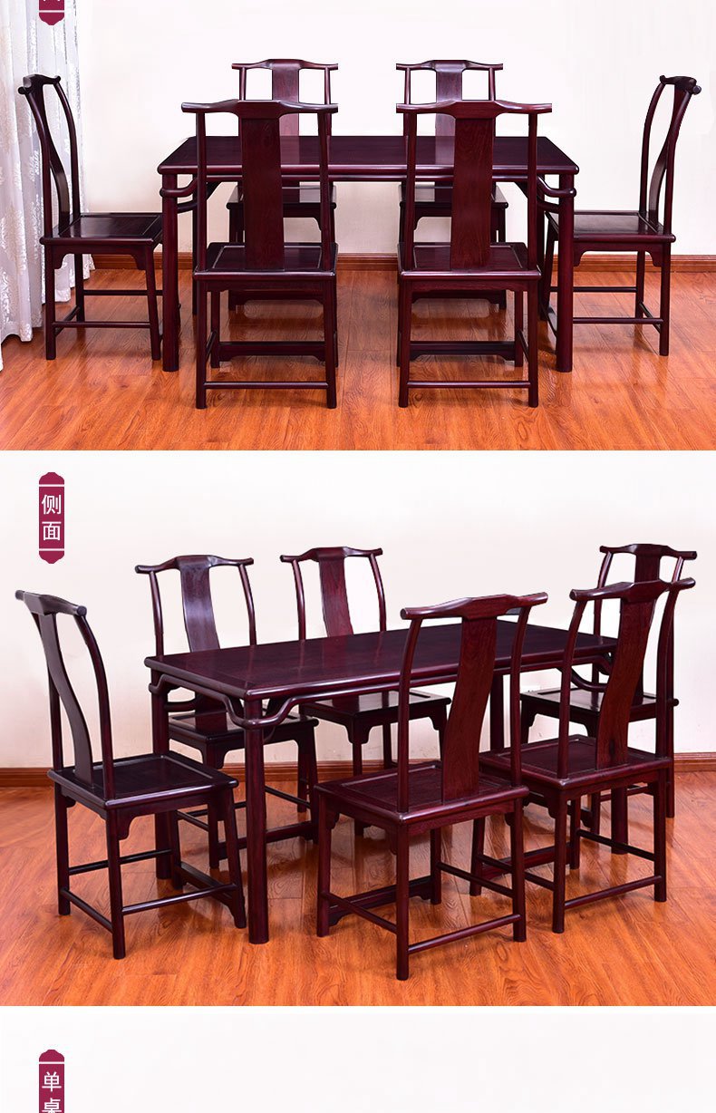 Đồ nội thất bằng gỗ gụ Tang Huangxuan bàn ăn bằng gỗ đàn hương máu Bàn ghế ăn bảy mảnh bằng gỗ nguyên khối kết hợp Bàn vuông Trung Quốc bàn ăn bàn ăn
