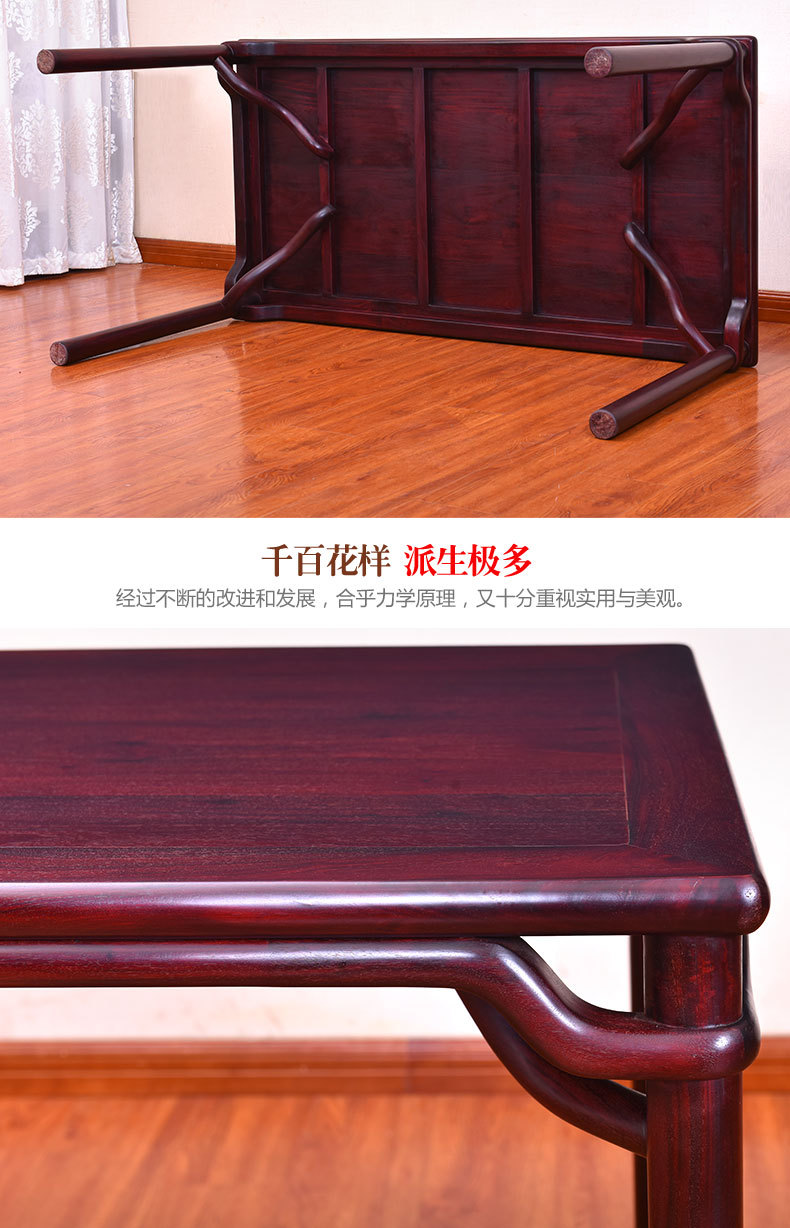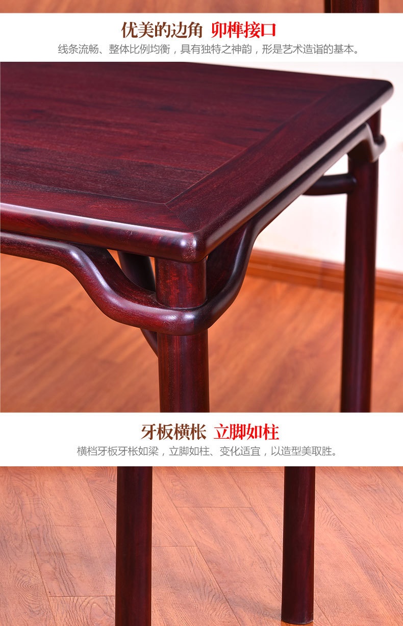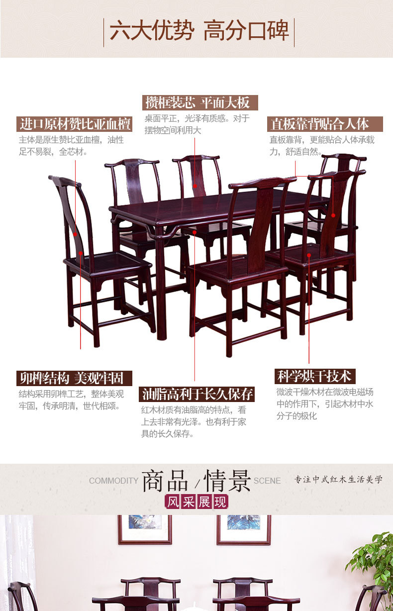 Đồ nội thất bằng gỗ gụ Tang Huangxuan bàn ăn bằng gỗ đàn hương máu Bàn ghế ăn bảy mảnh bằng gỗ nguyên khối kết hợp Bàn vuông Trung Quốc bàn ăn bàn ăn