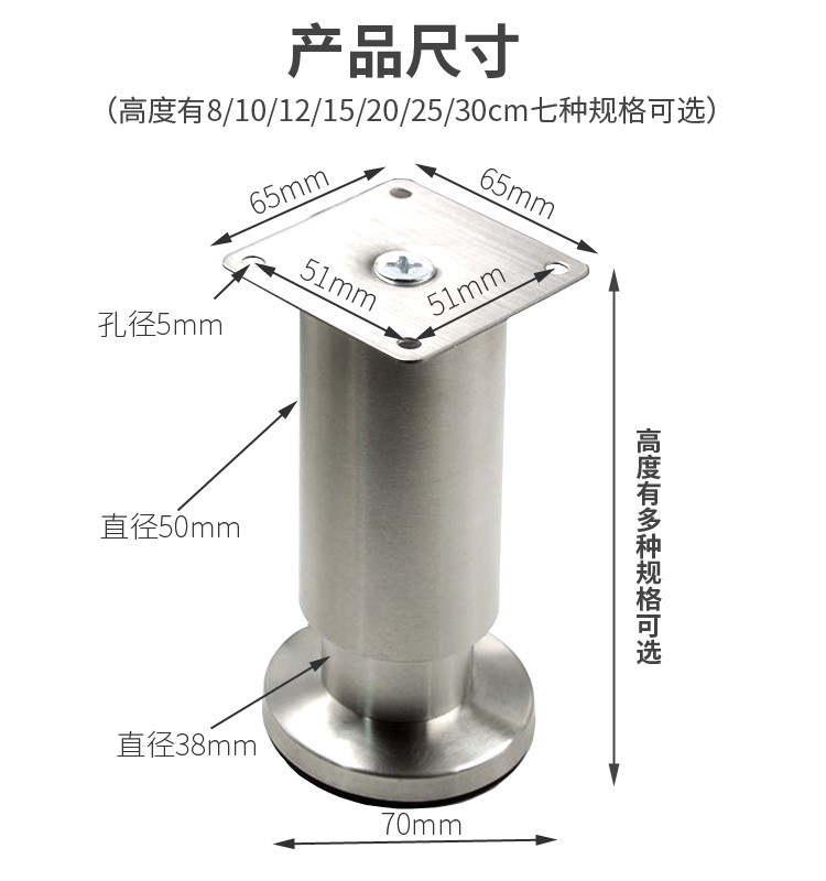 Đồ nội thất bằng thép không gỉ có thể điều chỉnh chân ghế sofa không có lỗ đỡ chân giường hỗ trợ bàn cà phê Bàn tivi chân tủ đồ nội thất nâng cao