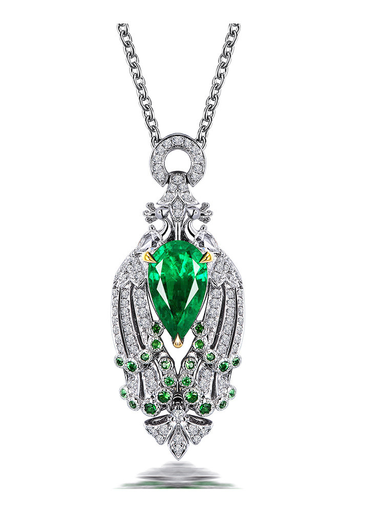 Đồ trang sức cao cấp thiết kế mô phỏng ngọc lục bảo Colombia tự nhiên mặt dây chuyền nữ con công vòng cổ ngọc lục bảo bán buôn