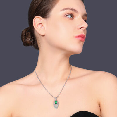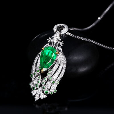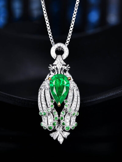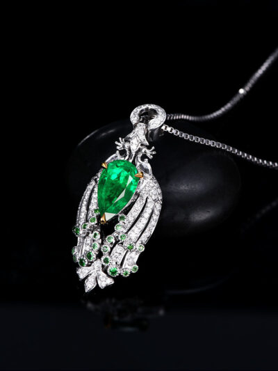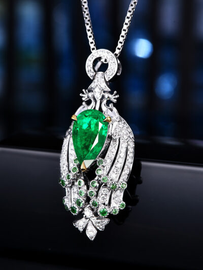 Đồ trang sức cao cấp thiết kế mô phỏng ngọc lục bảo Colombia tự nhiên mặt dây chuyền nữ con công vòng cổ ngọc lục bảo bán buôn