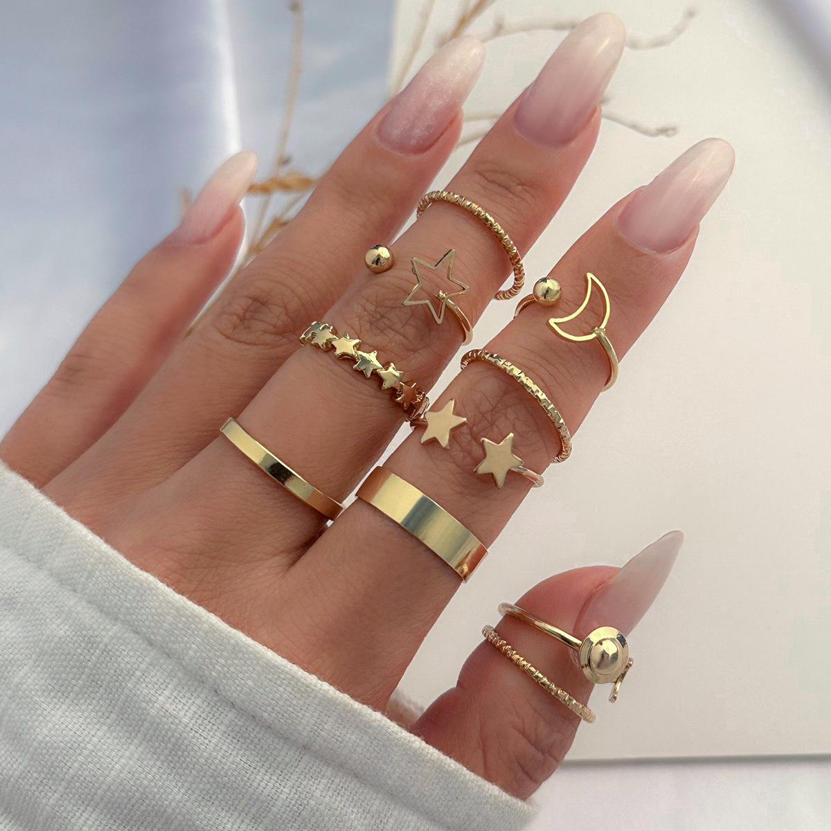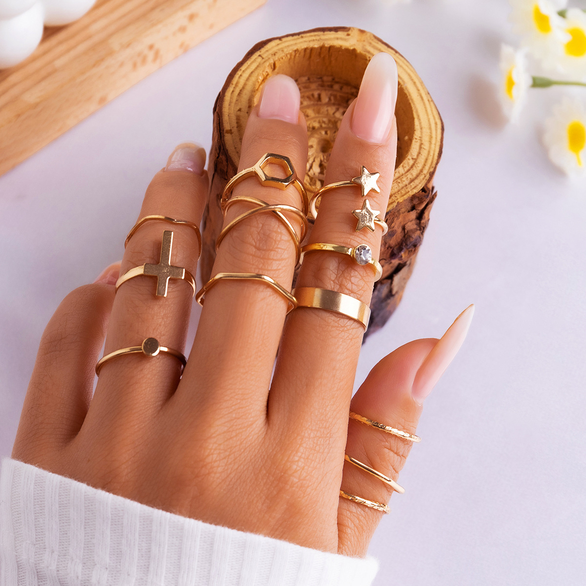 Đồ trang sức xuyên biên giới châu Âu và châu Mỹ Xingyue khảm kim cương mở chung bộ nhẫn nhẫn đơn giản đồng bằng vòng tròn thích hợp nhẫn thời trang