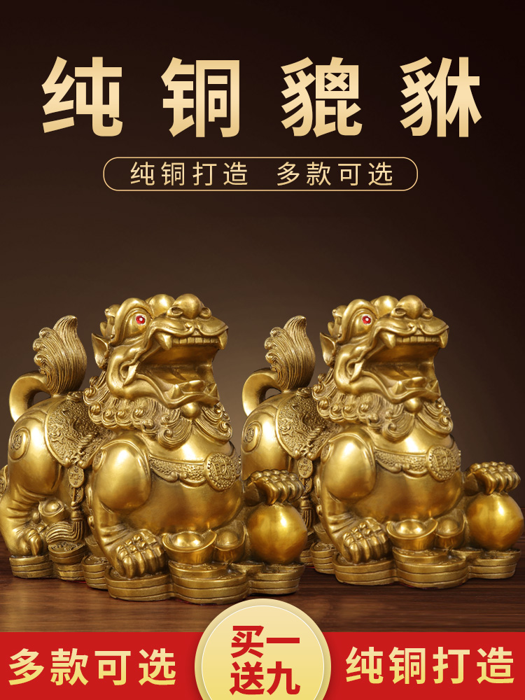 Đồ trang trí bằng đồng Binyue Pixiu một cặp đồng nguyên chất Pixiu Piqiu nhà cửa phòng khách trang trí văn phòng phụ kiện nhà