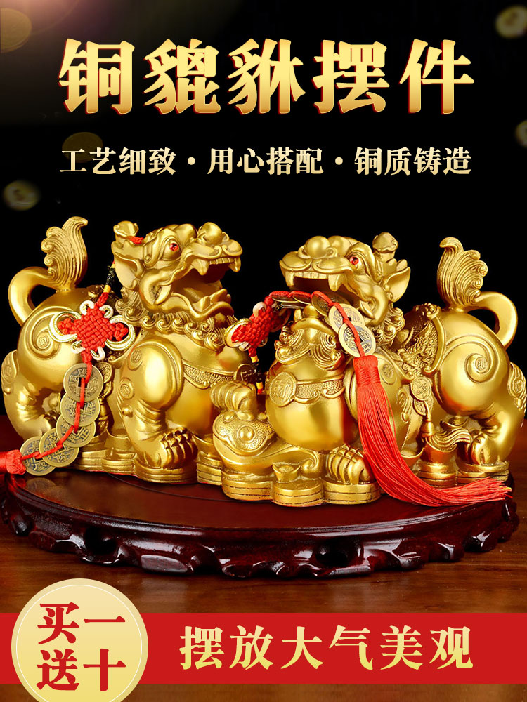 Đồ trang trí bằng đồng Pixiu một cặp may mắn trong phòng khách cửa hàng trang trí bàn văn phòng trang trí bàn Piqiu Pixiu món quà khai trương