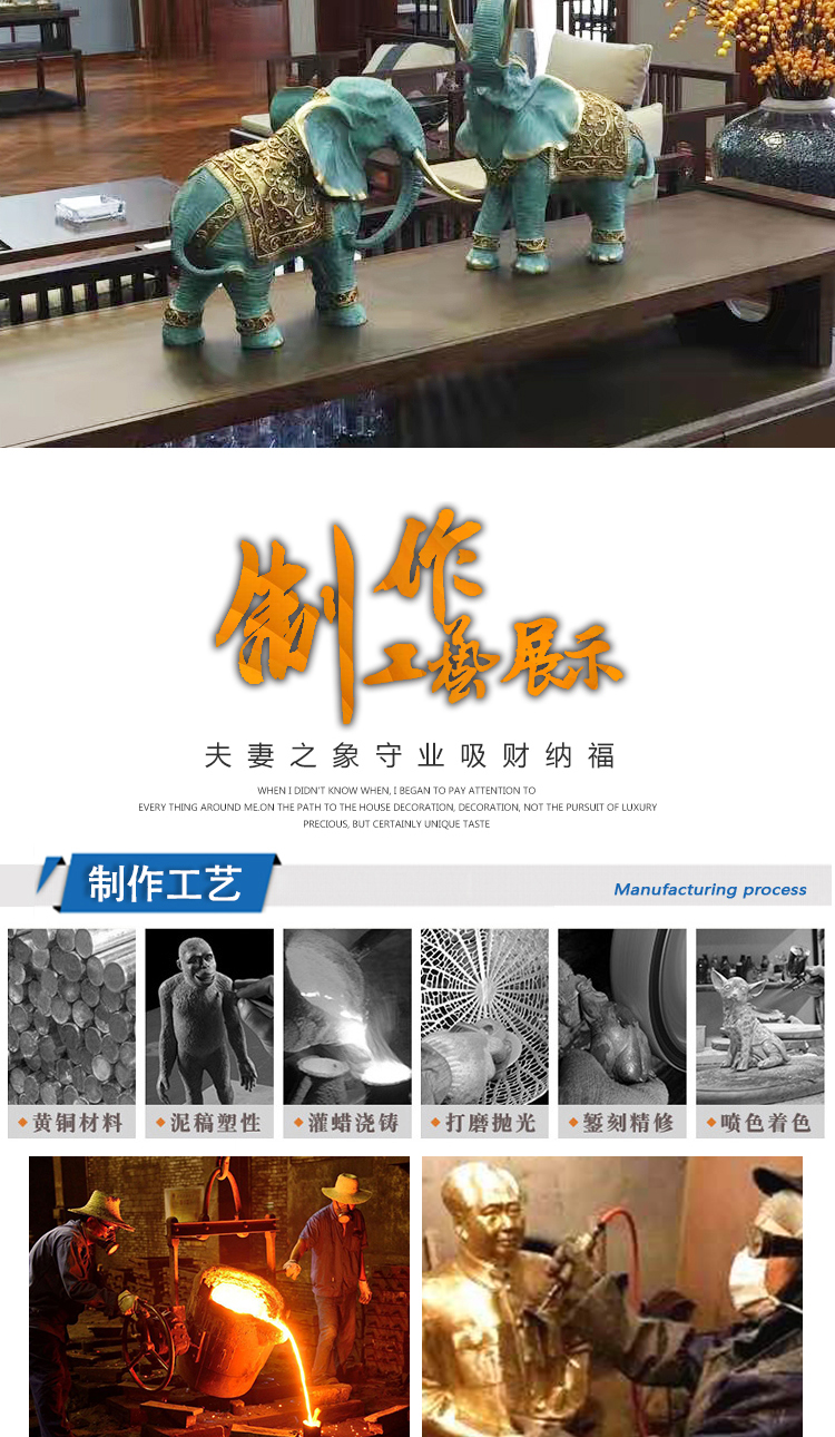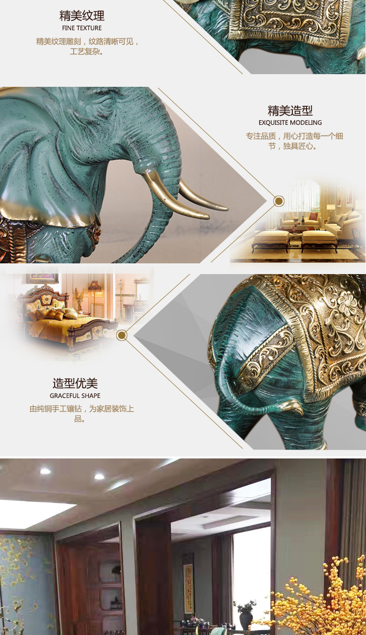Đồ trang trí đôi voi bằng đồng nguyên chất phòng khách tủ tivi may mắn lối vào nhà phố quà tặng trang trí nhà cao cấp tinh xảo