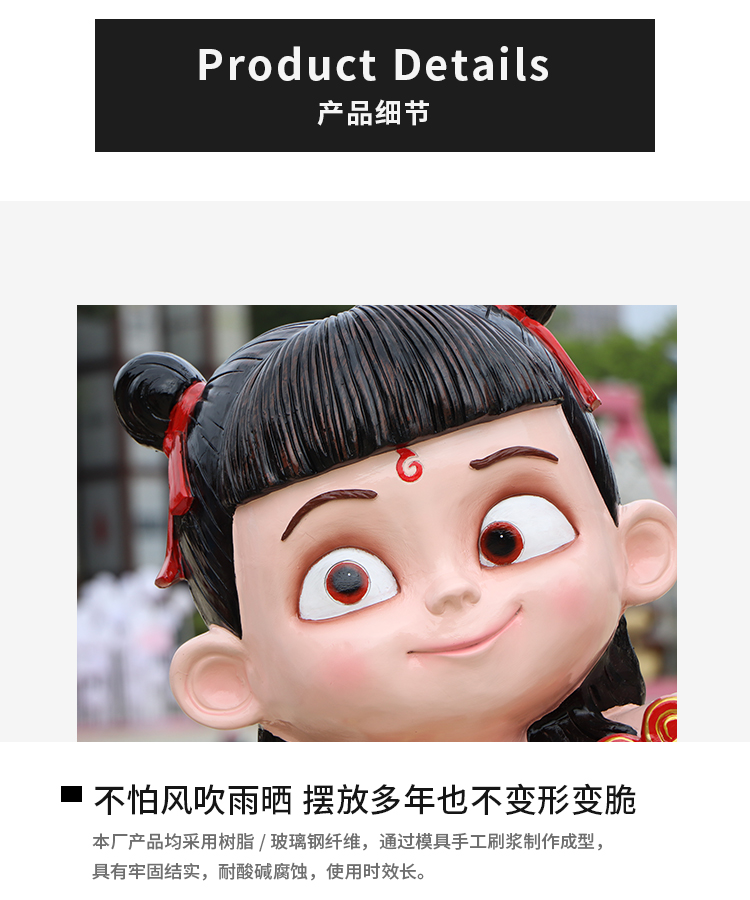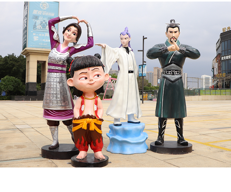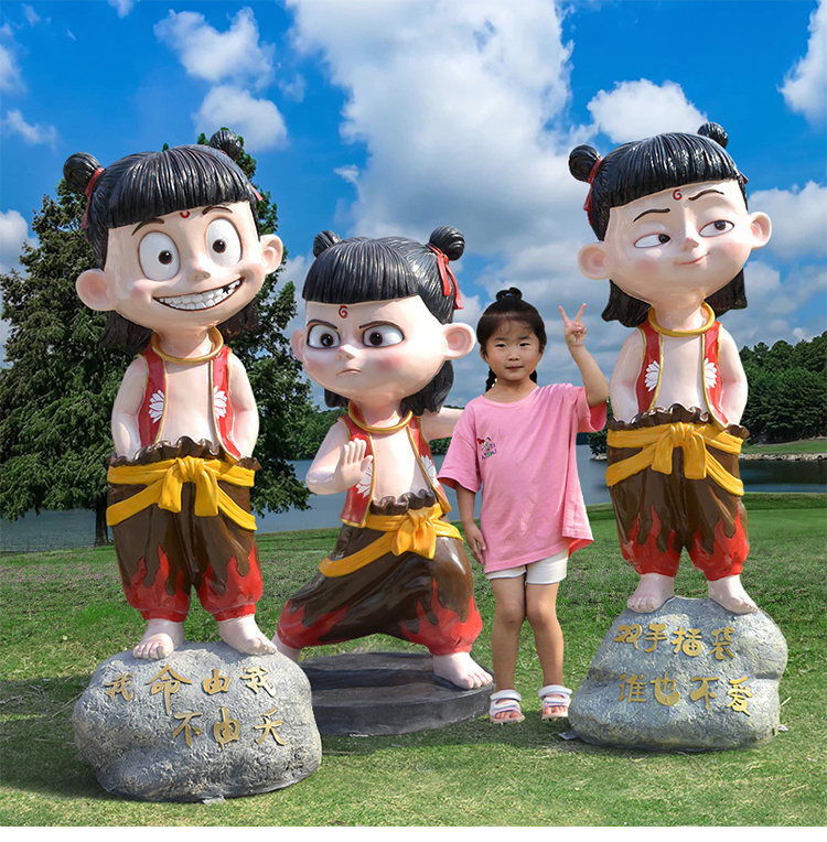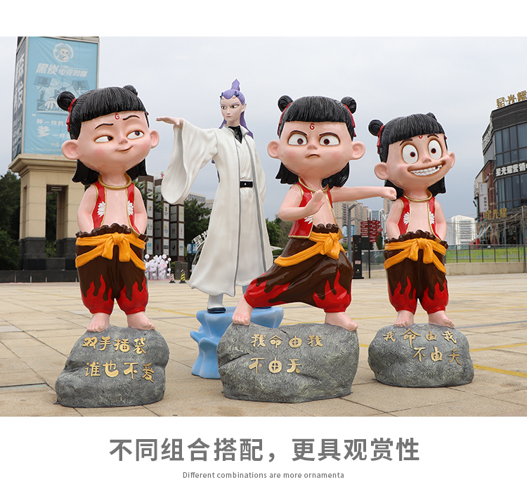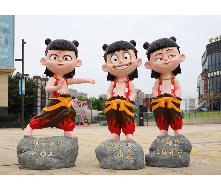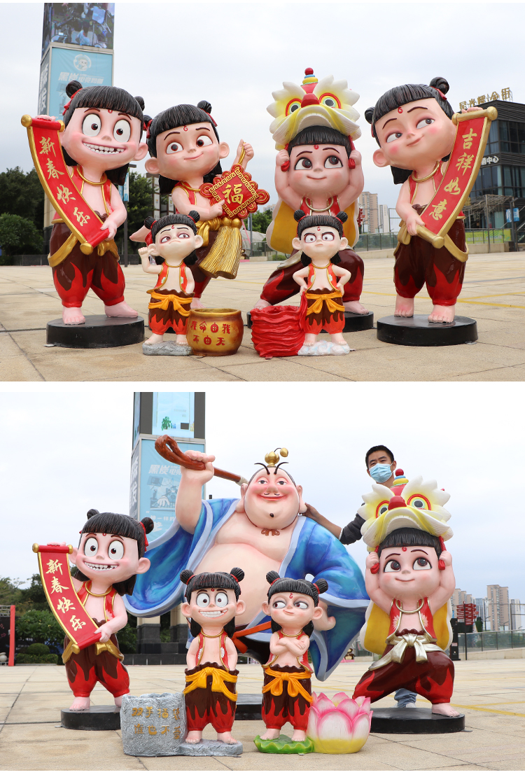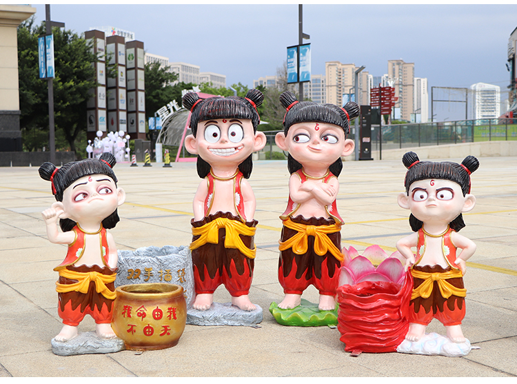 Đồ trang trí ngoài trời Nezha cậu bé ma thuật đến với thế giới điêu khắc phim hoạt hình hoạt hình trang trí sợi thủy tinh gia cố bằng nhựa lối vào trung tâm mua sắm trang trí quy mô lớn