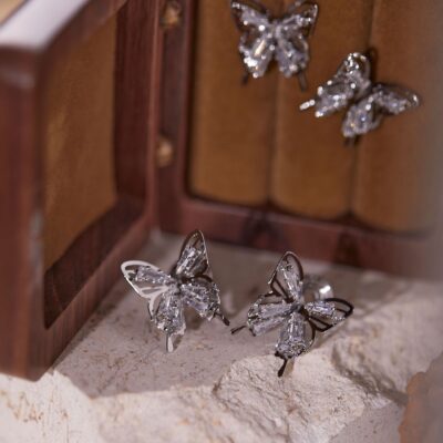 Đôi tai thật thông minh ~ bông tai zircon hình bướm rỗng dành cho nữ mùa hè cao cấp có ý nghĩa thích hợp với bông tai độc đáo khí chất bông tai người nổi tiếng
