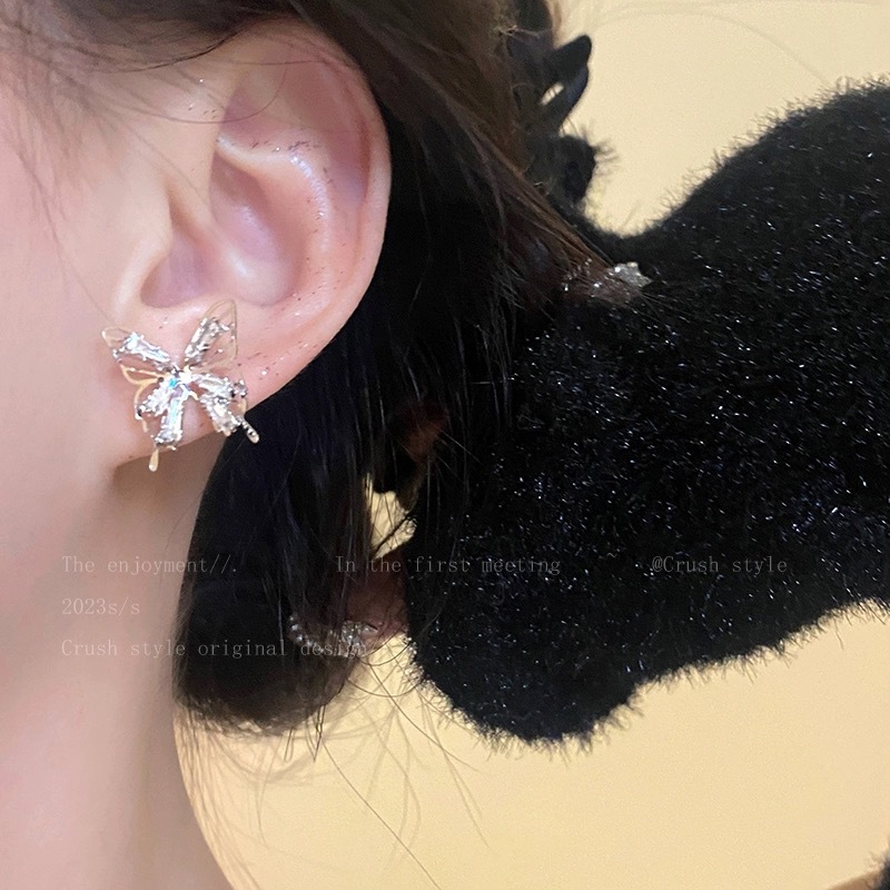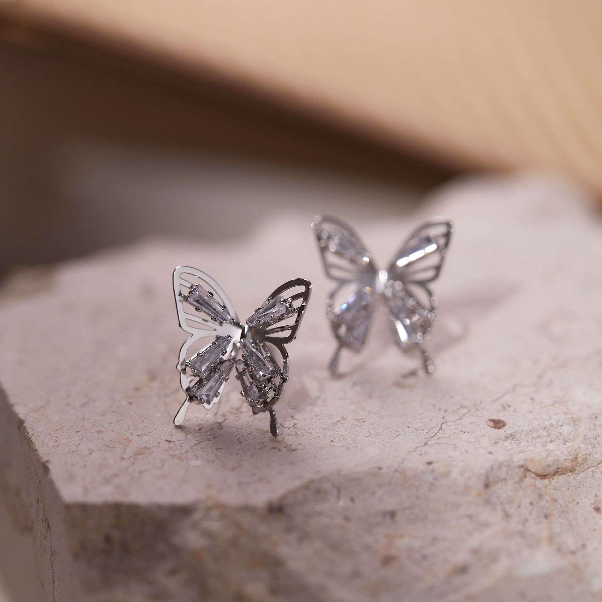 Đôi tai thật thông minh ~ bông tai zircon hình bướm rỗng dành cho nữ mùa hè cao cấp có ý nghĩa thích hợp với bông tai độc đáo khí chất bông tai người nổi tiếng