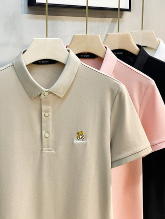 Đơn giản gấu thêu ve áo đẹp trai cao cấp Áo thun Polo nam xu hướng thủy triều thương hiệu mùa hè áo thun nam tay ngắn