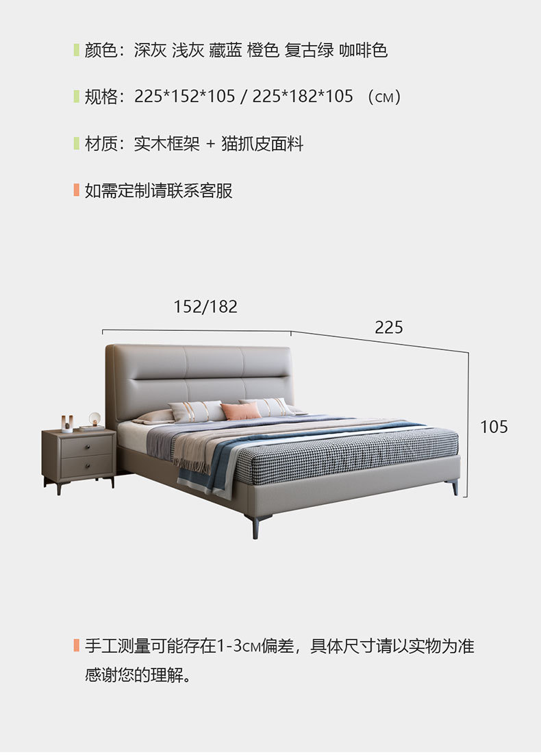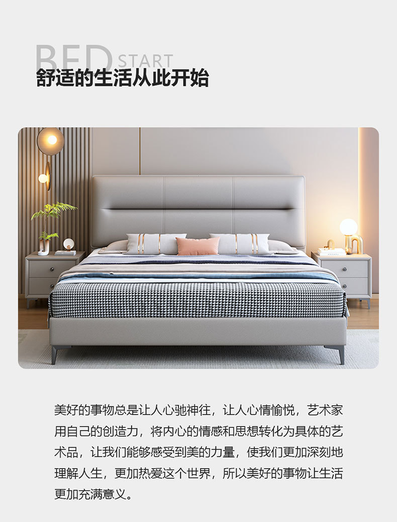 Đơn giản hiện đại giường da phòng ngủ chính và khách 1.8m giường cưới 2023 mới Bắc Âu nhẹ sang trọng căn hộ nhỏ đôi giường mềm mại