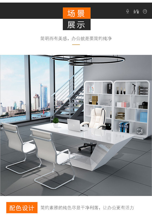 Đơn giản hiện đại Sơn trắng Bàn Boss Bàn Chủ tịch Thời trang sáng tạo Bàn điều hành Bàn điều hành Alien Manager Bàn