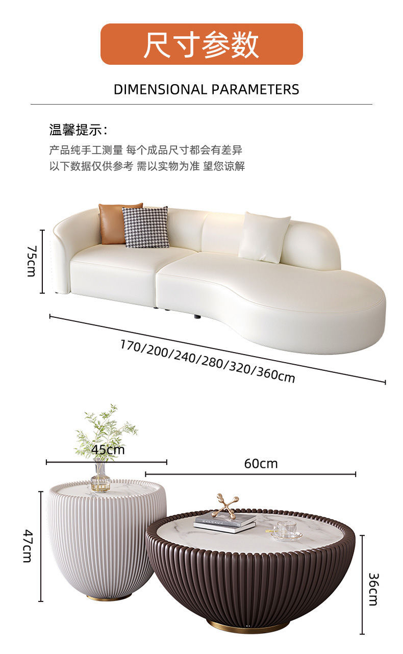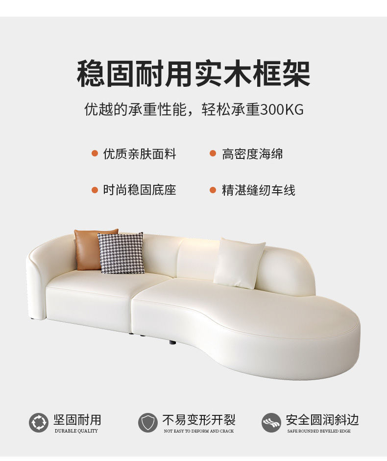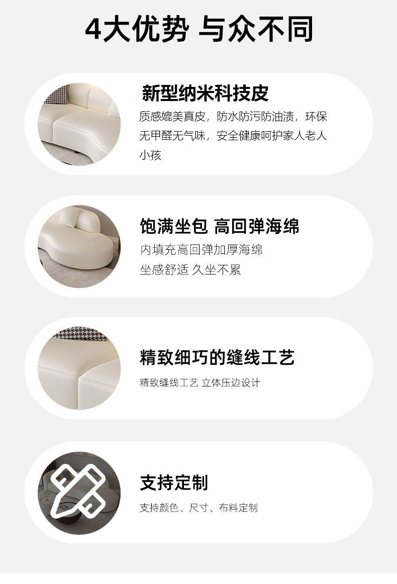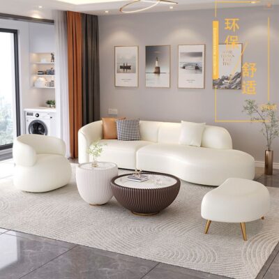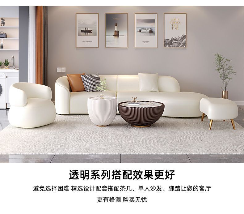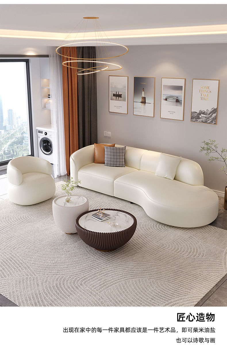 Đơn giản mới sofa phòng khách căn hộ nhỏ hình bán nguyệt kem ghế sofa thẩm mỹ viện cong Phổ biến trên Internet bàn cà phê kết hợp