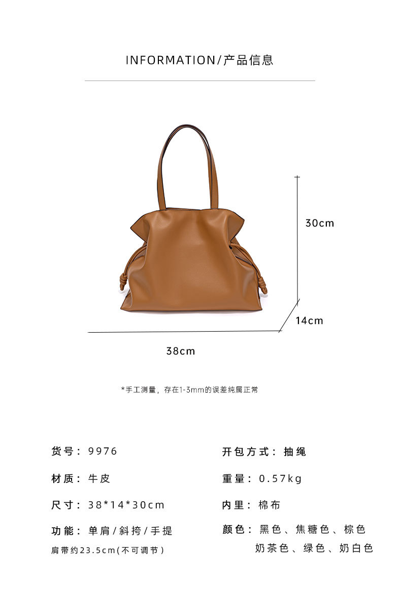 Kích thước hành lý: Trung bình Chất liệu lót: Cotton Mã sản phẩm: 9976 Thương hiệu: Không có Cảnh áp dụng: Sắp xếp hàng ngày Màu sắc: Mơ/Nâu/Kem/Xanh lá cây/Caramen/Đen/Đen Phong cách hợp thời trang: Có nếp nhăn Loại túi bên ngoài: Da túi mở Đặc điểm: Da bò hai lớp Năm và mùa: Hè 2022 Độ cứng: Mềm Chất liệu: Da Hình dạng túi: Hình vuông nằm ngang Cách mở: Túi khóa nam châm Cấu trúc bên trong: Túi khóa kéo nhiều lớp Các yếu tố phổ biến: Nếp gấp/Chỉ khâu/Chỉ khâu Phong cách: đơn giản thành thị Số lượng dây đeo vai: đơn Có hoặc không có lớp giữa: có