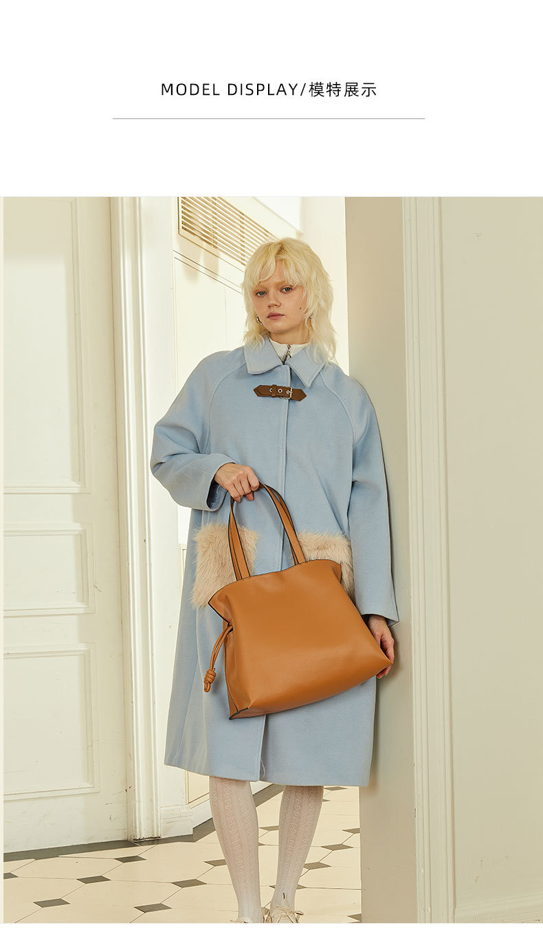 Đơn giản mới thời trang Hàn Quốc da bò túi thích hợp túi da nữ gấp túi đeo vai túi dây rút túi tote lớn