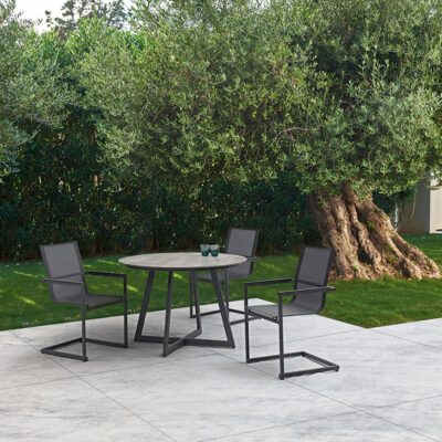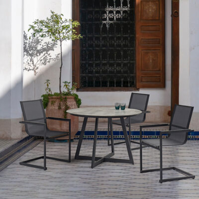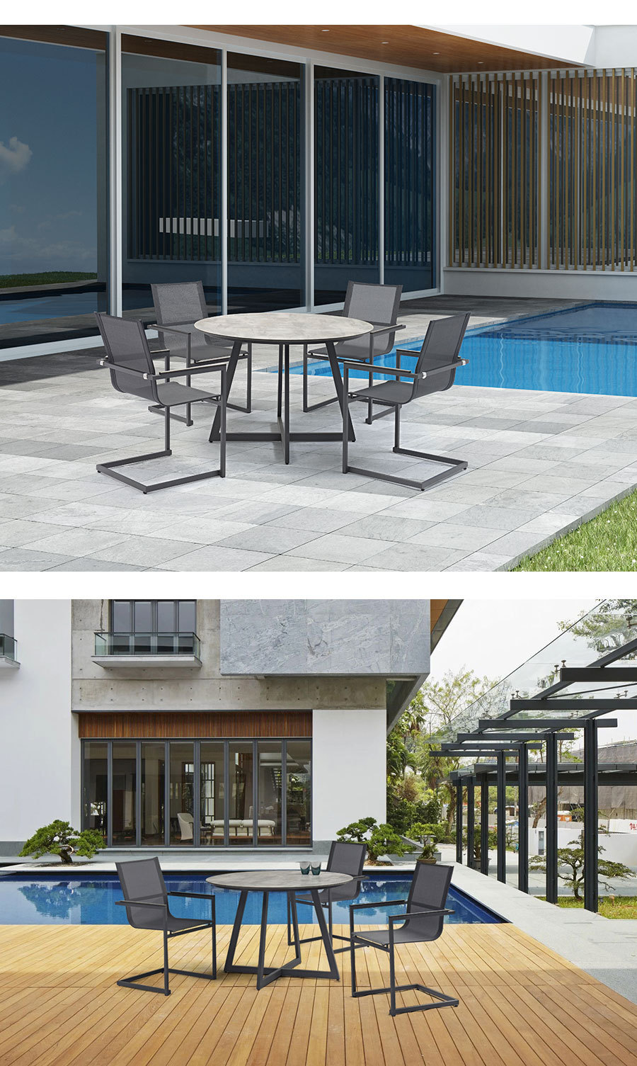 Đơn giản quán cafe ngoài trời chống nắng và chống thấm bộ bàn ghế ăn ngoài trời Teslin kết hợp ban công sân thượng bàn giải trí là lựa chọn lý tưởng cho không gian ngoài trời hiện đại. Liên hệ ngay để được hỗ trợ nhập khẩu và tư vấn chi tiết.