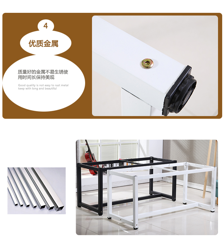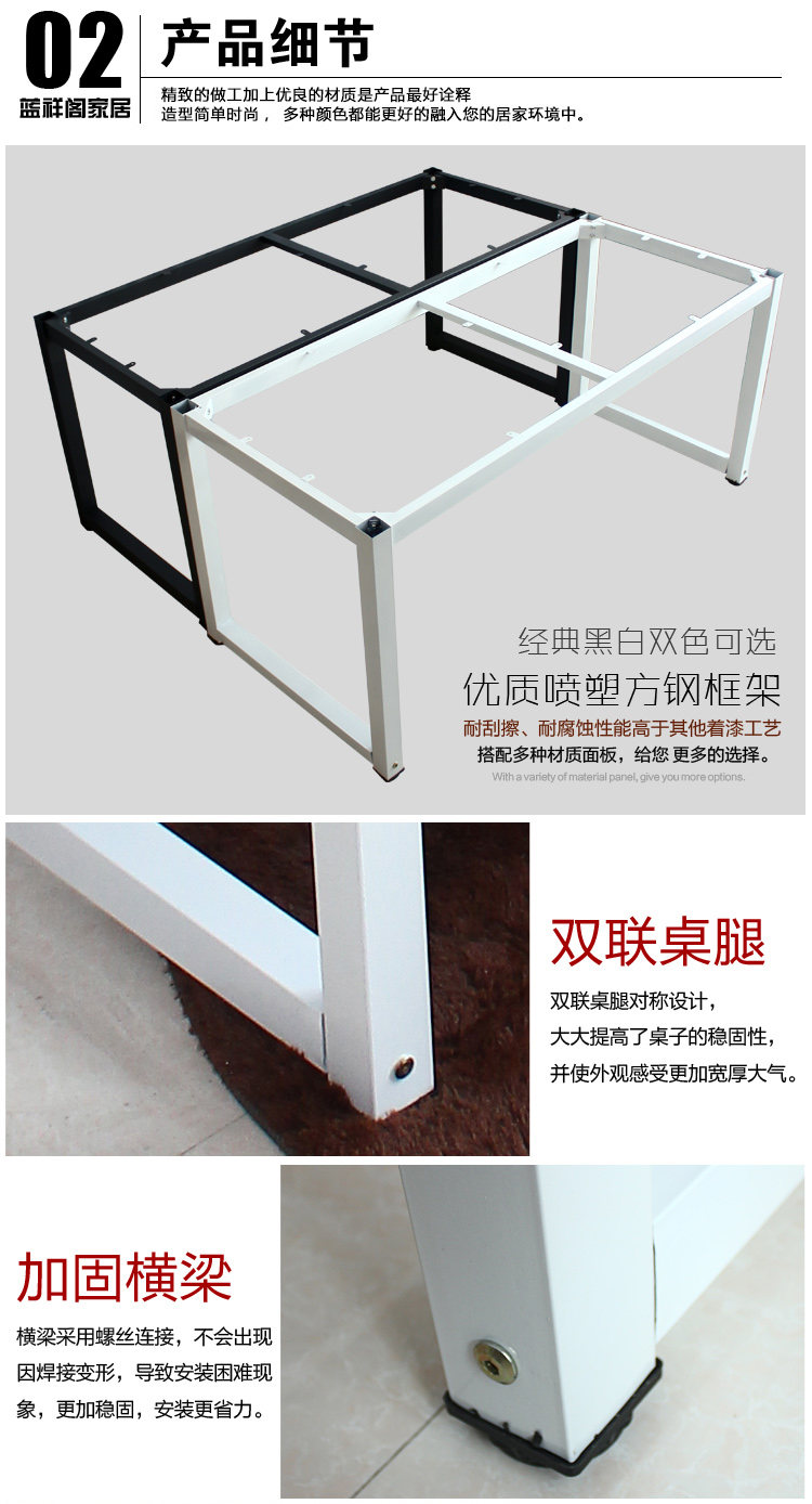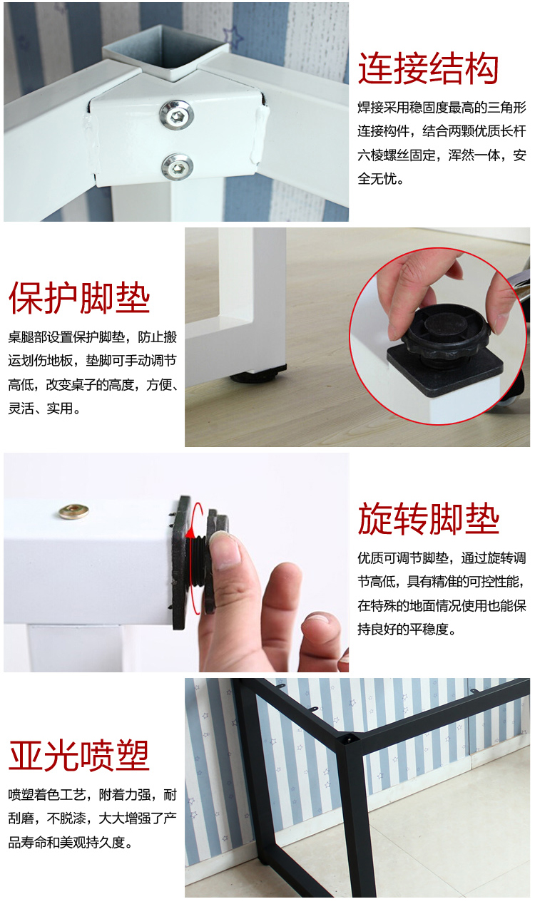 3、桌架:50*25mm钢管,桌腿:50*50mm方管 外表为全环保喷塑工艺,环保无味,耐用!