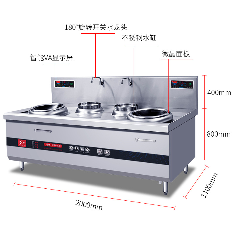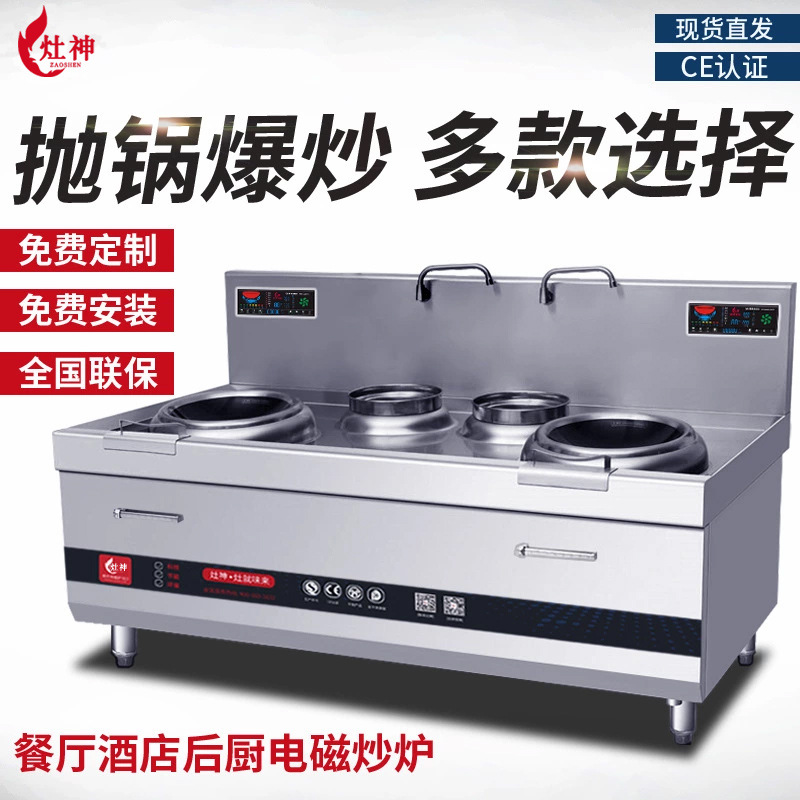 Đơn vị bếp chiên nhỏ hai đầu hai đuôi điện từ thương mại căng tin nhà sản xuất bếp chiên hai mắt công suất cao theo chiều dọc