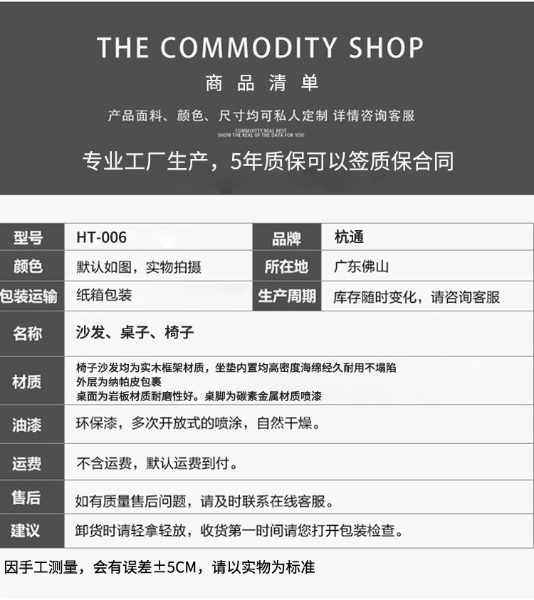Mã sản phẩm: TB674531565168 Nhãn hiệu: Nổi tiếng Màu sắc: Sofa đôi màu xanh lá cây/Sofa đơn màu xanh lá cây/Sofa đôi màu trắng nhạt/Sofa đơn màu trắng nhạt/Sofa đôi màu xám/Sofa đơn màu xám/Bàn vuông cao 60*50/Cao 60*50 Bàn làm vườn / Bàn làm vườn cao 60 * 50 Gấp: Không Model: HT-006 Phương pháp xử lý: Tùy chỉnh theo bản vẽ Có bằng sáng chế hay không: Không Thông số kỹ thuật: Tùy chỉnh thường xuyên Có mô hình 3D hay không: Không Có giao hàng tận nơi hay không: Giao hàng lên lầu Có cung cấp dịch vụ lắp đặt hay không: Có hay không Người nộp thuế chung: Không Chức năng: Đa chức năng Chất liệu: Gỗ đặc Kích thước: Tiêu chuẩn chính thức Không gian: Địa điểm thương mại Đối tượng áp dụng: Người lớn hoặc không Xuất khẩu xuyên biên giới Nguồn cung cấp đặc biệt: Không Phong cách: Hiện đại và đơn giản. Quý khách có nhu cầu mua Bàn ghế quán café nhập khẩu vui lòng liên hệ với chúng tôi để được tư vấn hỗ trợ. Dịch vụ mua hàng Trung Quốc sẽ hỗ trợ quý khách mua hàng từ nhà cung cấp và giao tới tận tay quý khách hàng.