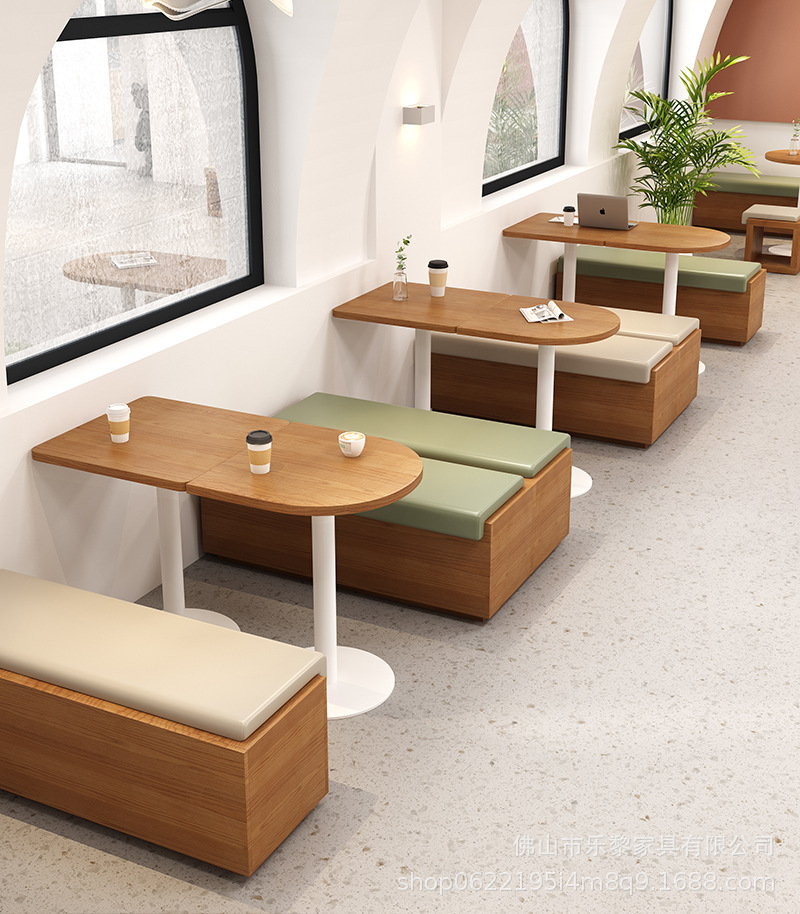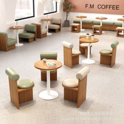 Đơn vị uy tín trà sữa tiệm bánh món ăn phương tây cafe gỗ rắn bàn ghế vuông kết hợp tường thẻ ghế sofa đàm phán bàn tròn