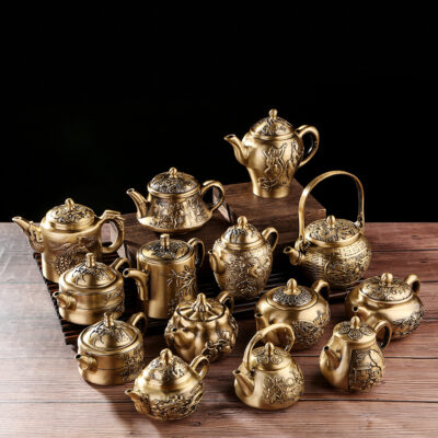 Đồng Bí Ngô Ấm Trà Văn Phòng Trà Trà Thú Cưng Dây Chạm Khắc Trang Trí Trang Trí Nhà Cửa Kim Loại Thủ Công