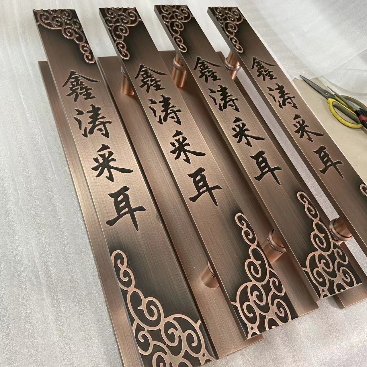 Đồng cổ Trung Quốc Xiangyun cửa kính trượt tay nắm cửa tùy chỉnh chữ khách sạn phòng riêng tay nắm cửa bằng gỗ tay nắm cửa