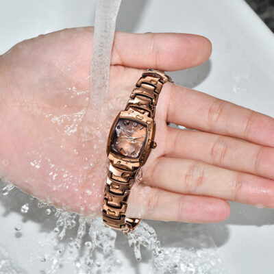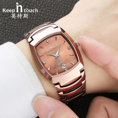 Đồng hồ cặp đôi bằng thép vonfram dành cho nữ mới Một bộ đăng ký Đồng hồ đeo tay nam nổ vuông dây thép Đồng hồ đeo tay nữ thạch anh