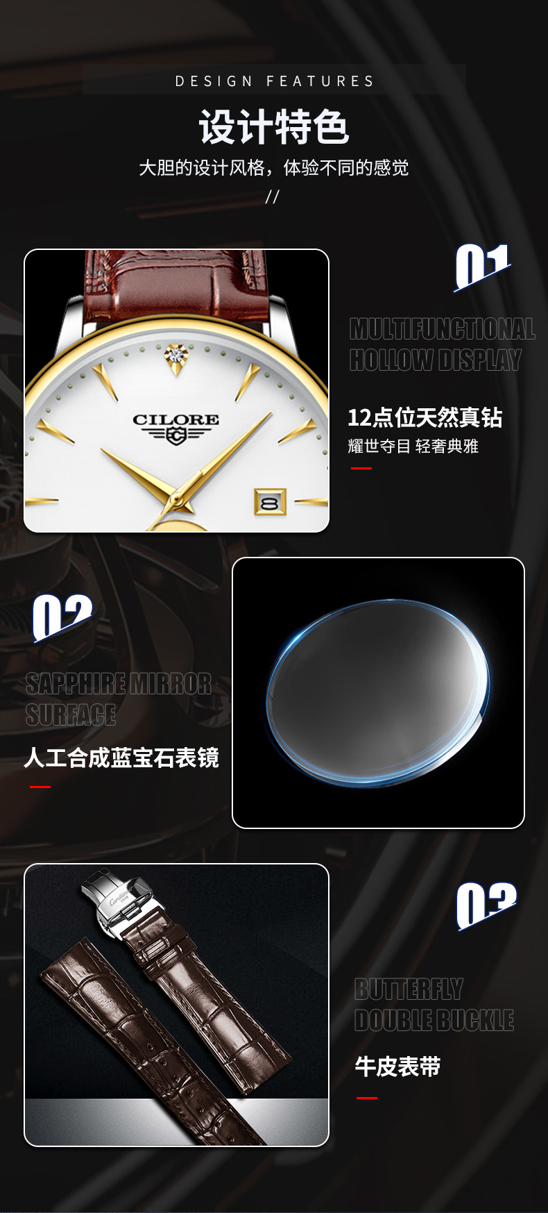 Đồng hồ cơ hoàn toàn tự động Ciro đồng hồ cơ nam thời trang xưởng đồng hồ nam cao cấp bán buôn