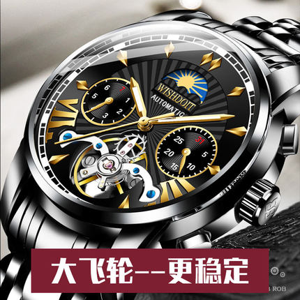 - 附加功能: 24小时指示 日历 夜光 月相显示 透视窗 小三针 星期显示