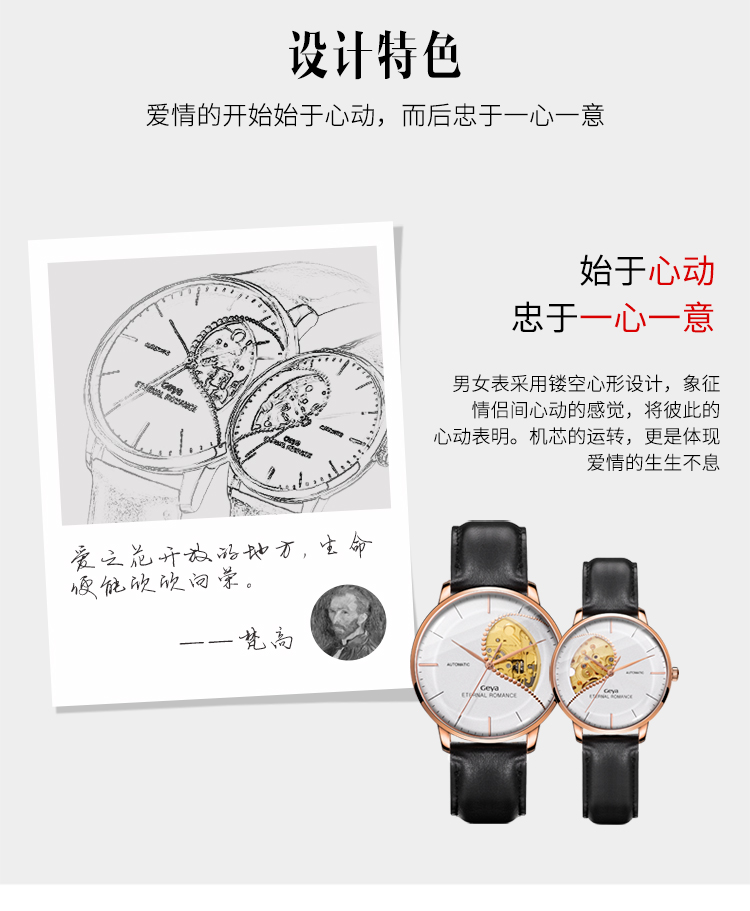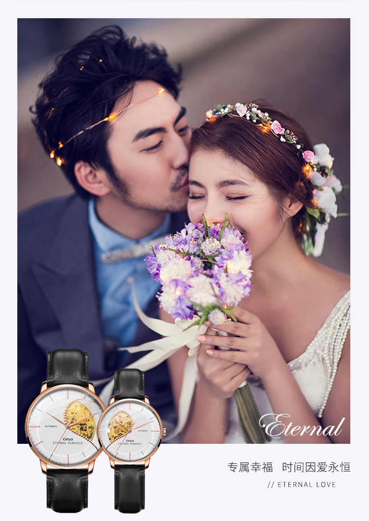 Đồng hồ đeo tay nữ Geya đôi đồng hồ hình trái tim đơn giản chống thấm nước chính hãng thương hiệu đồng hồ nữ tự động cho nam và nữ.