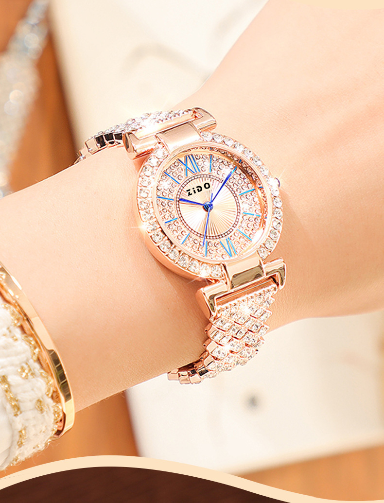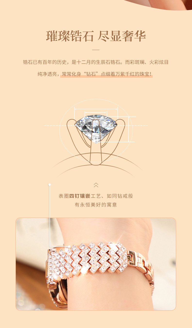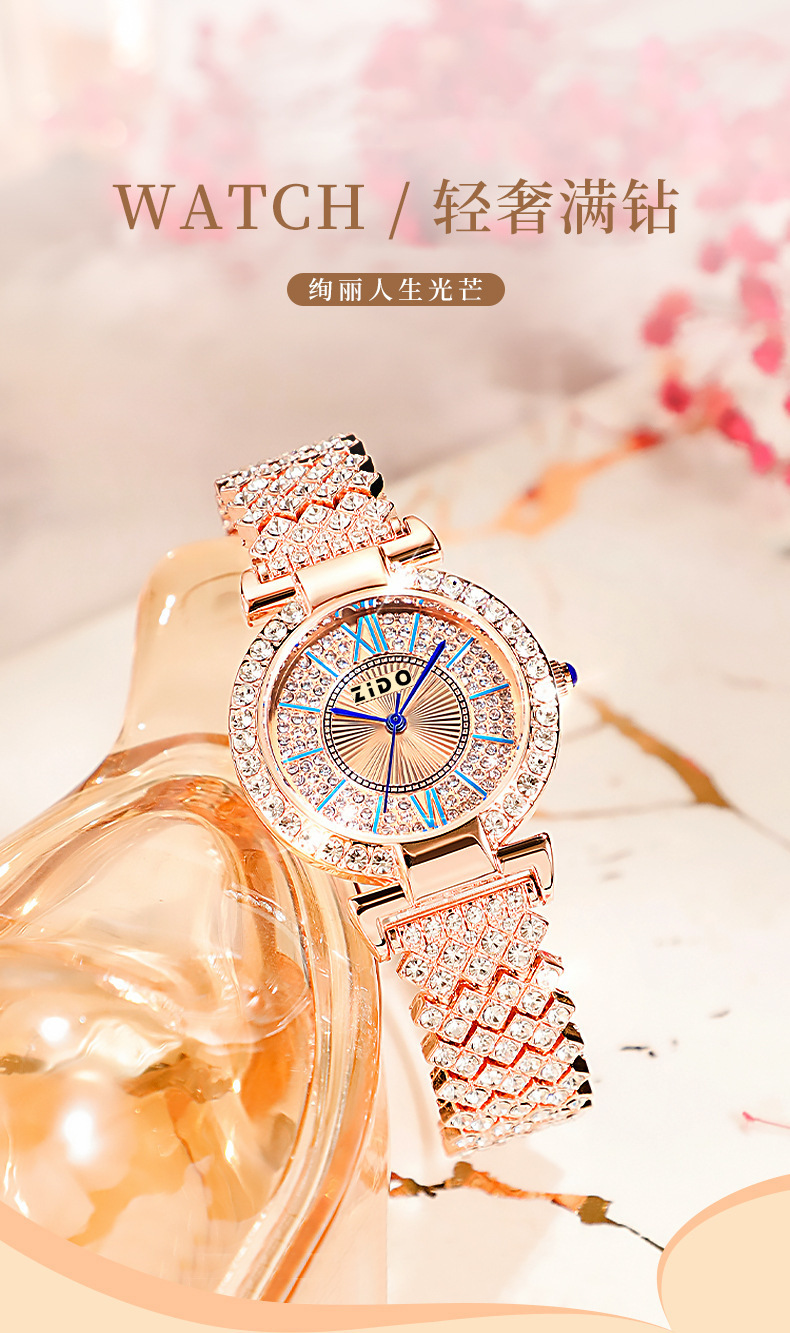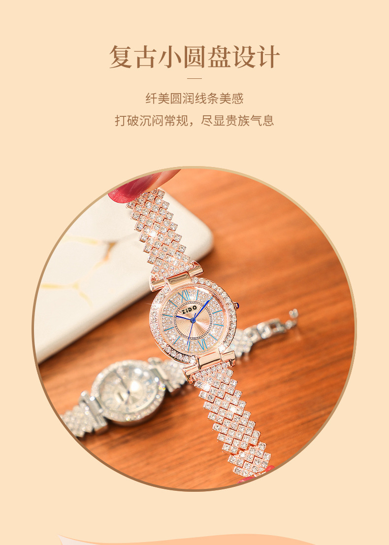 Đồng hồ đeo tay nữ kim cương đầy đủ sang trọng mới chính thức của Gypsophila Đồng hồ đeo tay thạch anh chống thấm nước phong cách retro Hàn Quốc