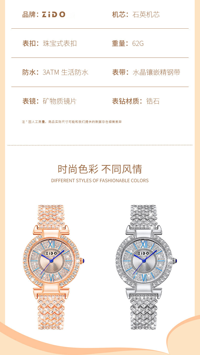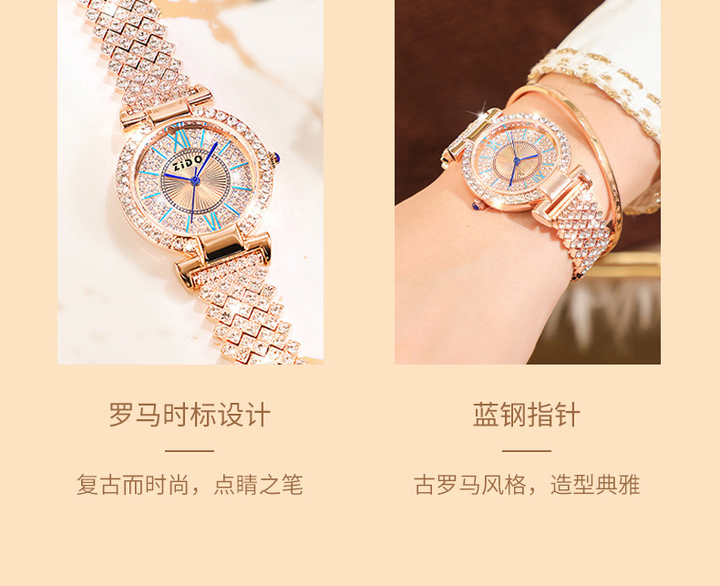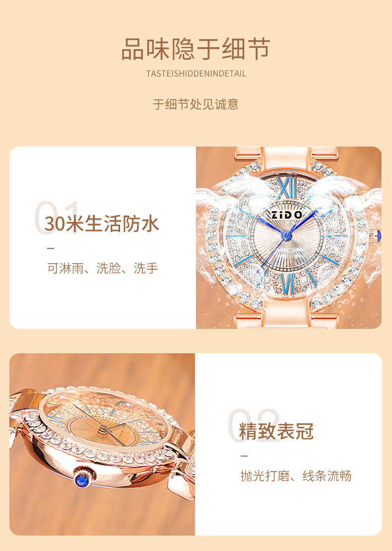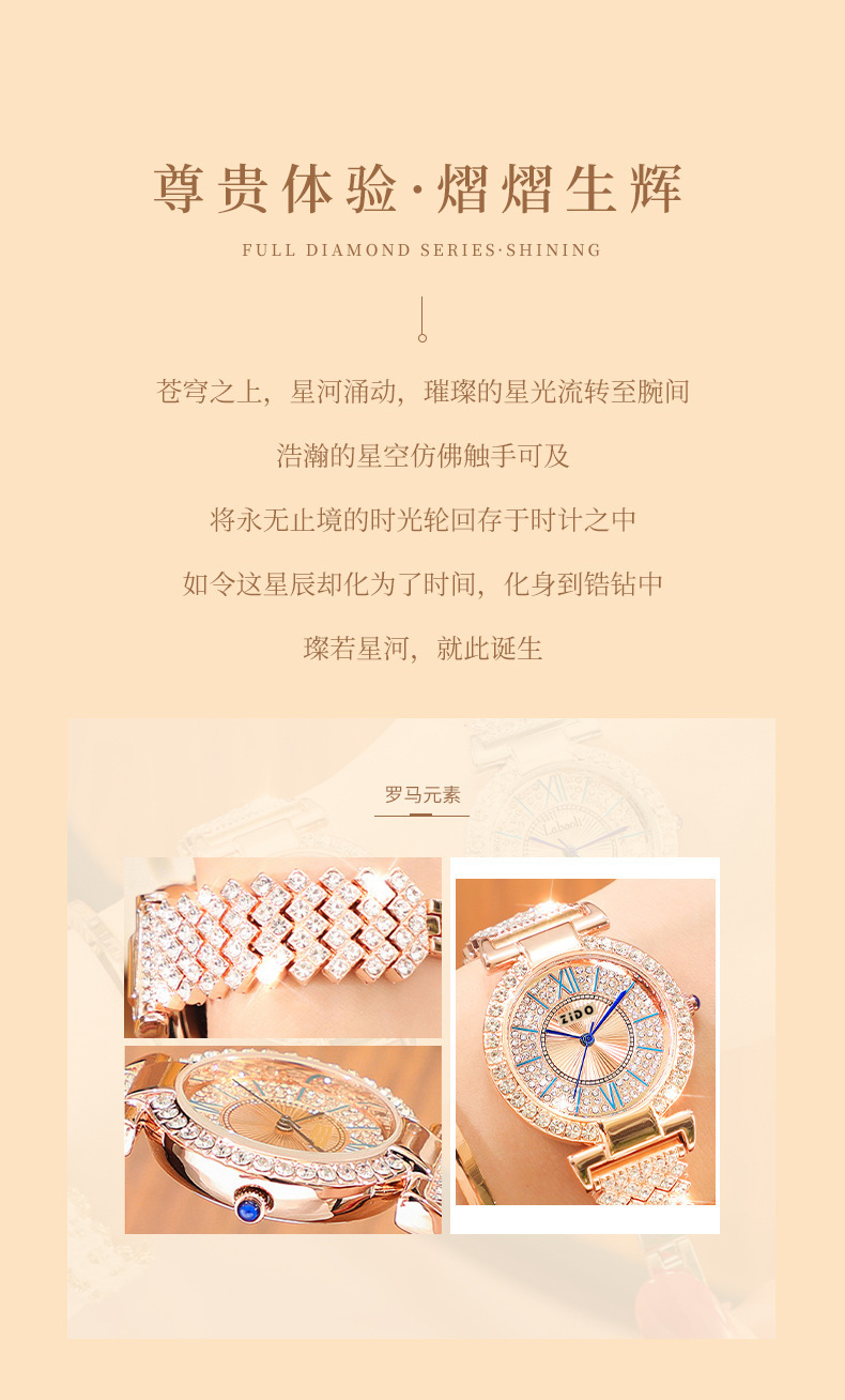 Đồng hồ đeo tay nữ kim cương đầy đủ sang trọng mới chính thức của Gypsophila Đồng hồ đeo tay thạch anh chống thấm nước phong cách retro Hàn Quốc