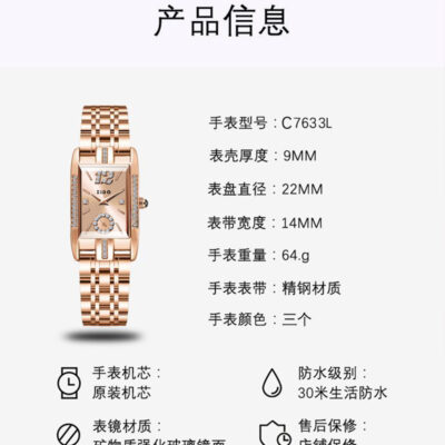 Đồng hồ đeo tay nữ mặt số nhỏ Zido thương hiệu mới thích hợp ánh sáng sang trọng khí chất thời trang giản dị phù hợp với tất cả các trận đấu đồng hồ nữ mặt vuông nhỏ