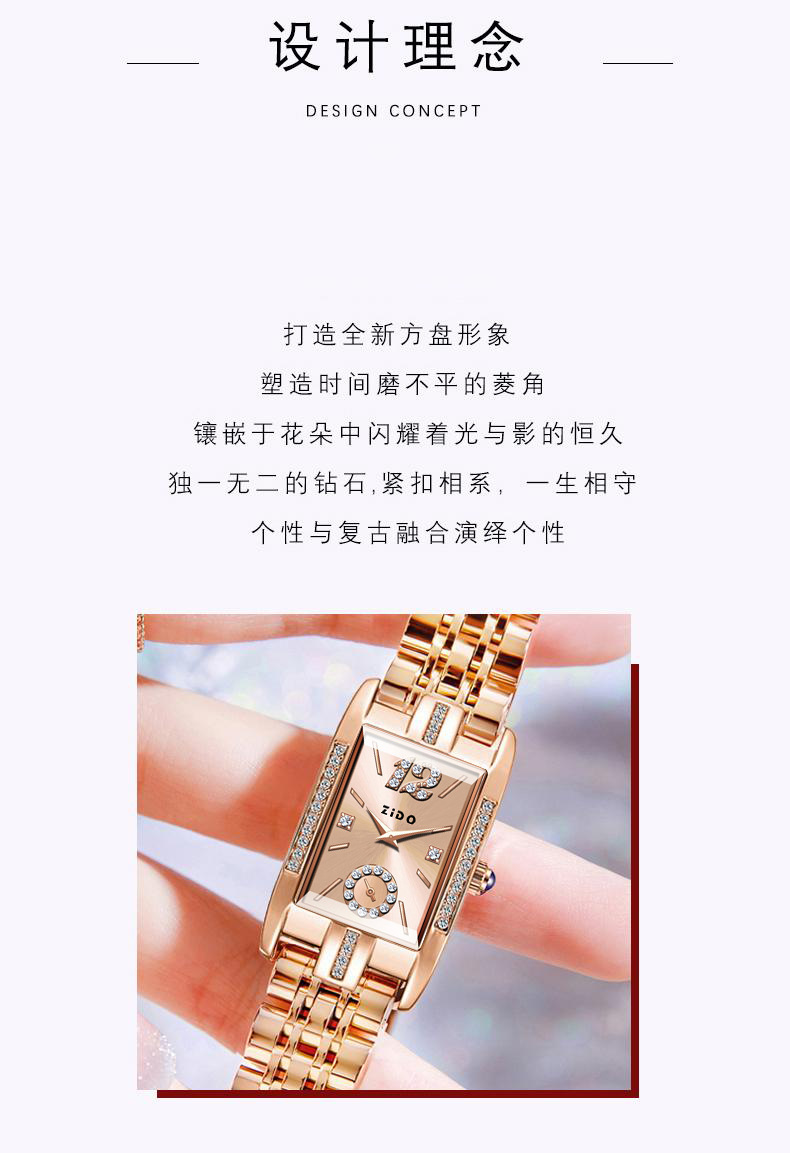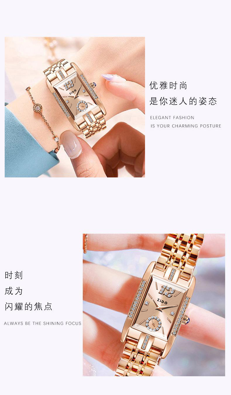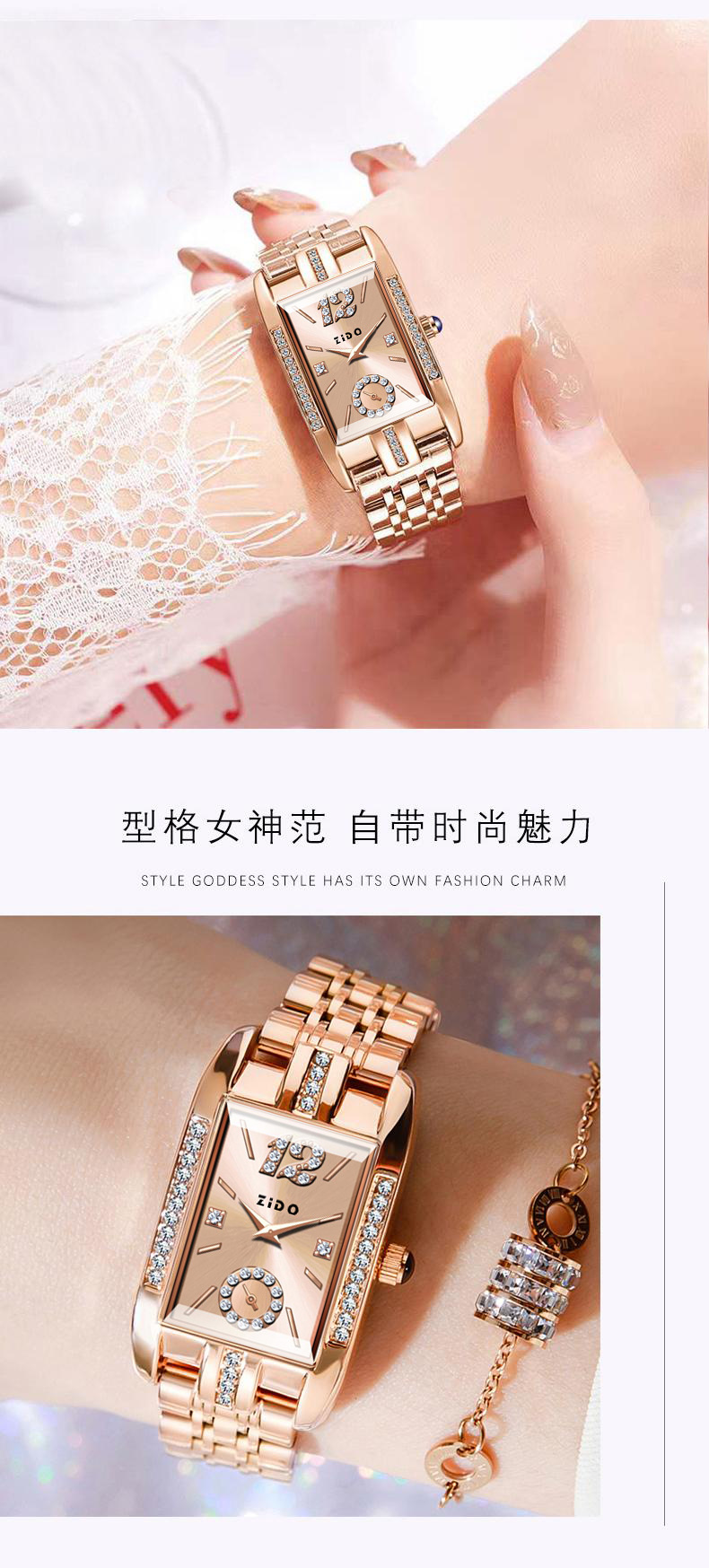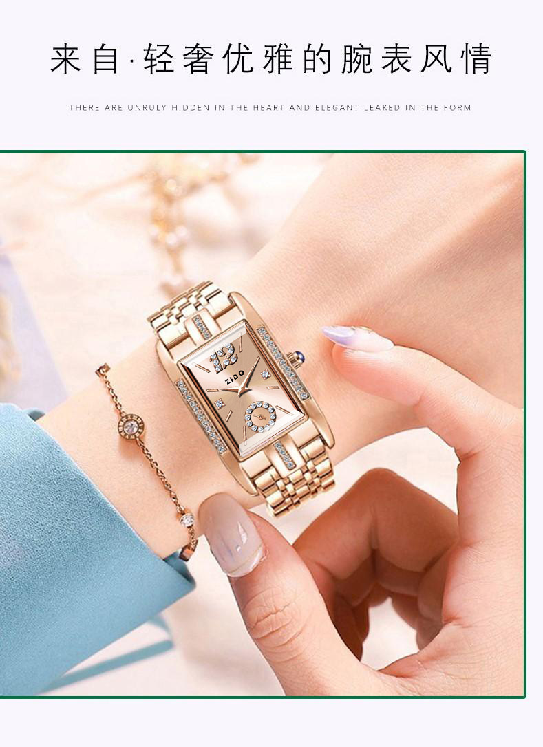 Đồng hồ đeo tay nữ mặt số nhỏ Zido thương hiệu mới thích hợp ánh sáng sang trọng khí chất thời trang giản dị phù hợp với tất cả các trận đấu đồng hồ nữ mặt vuông nhỏ