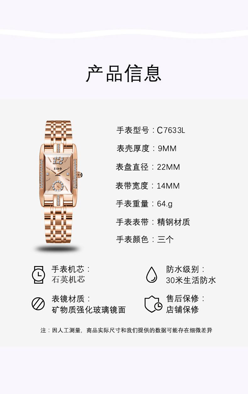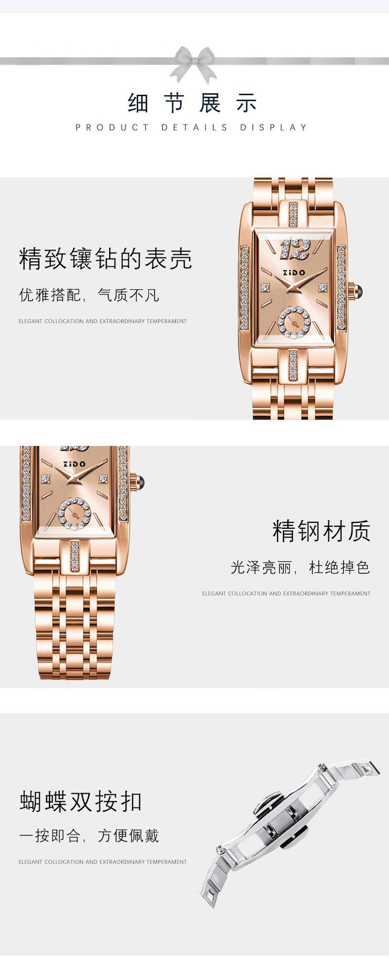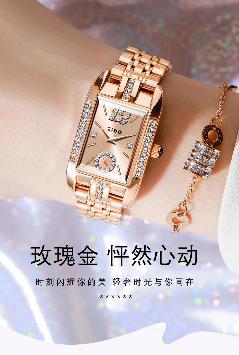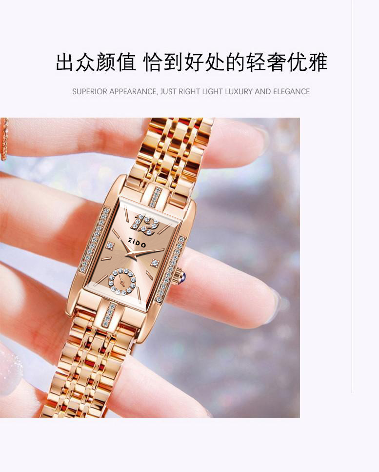 Đồng hồ đeo tay nữ mặt số nhỏ Zido thương hiệu mới thích hợp ánh sáng sang trọng khí chất thời trang giản dị phù hợp với tất cả các trận đấu đồng hồ nữ mặt vuông nhỏ