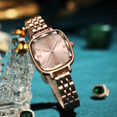 Đồng hồ đeo tay nữ mặt vuông bằng kim cương Hộp quà tặng bốn món Bộ trang sức cỏ ba lá